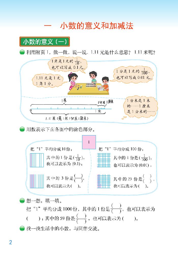 一 小数的意义和加减法