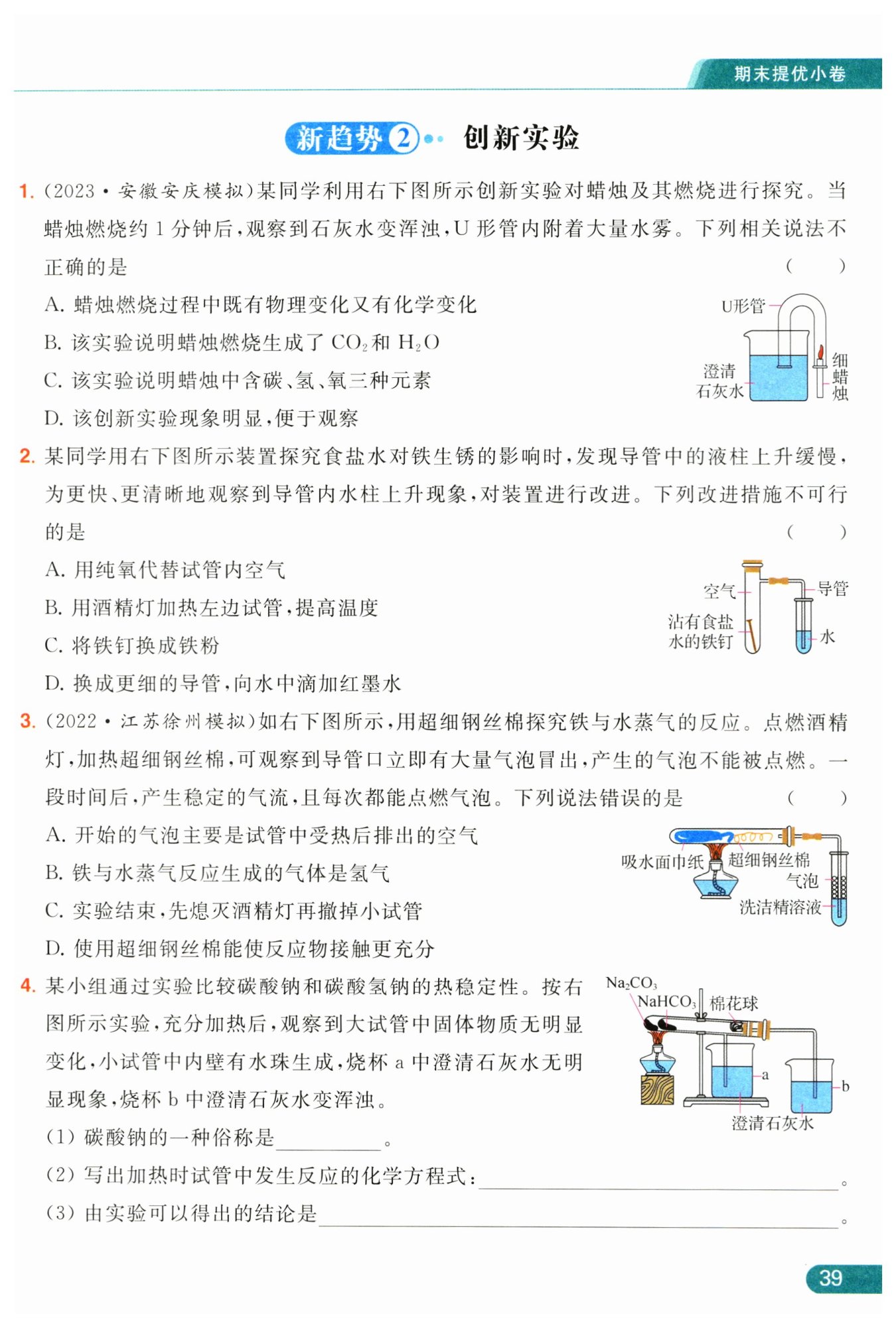 $2\mathrm {NaHCO}_3\xlongequal[]{△}\mathrm {Na}_2\mathrm {CO}_3+\mathrm {CO}_2↑+\mathrm {H}_2\mathrm {O}$