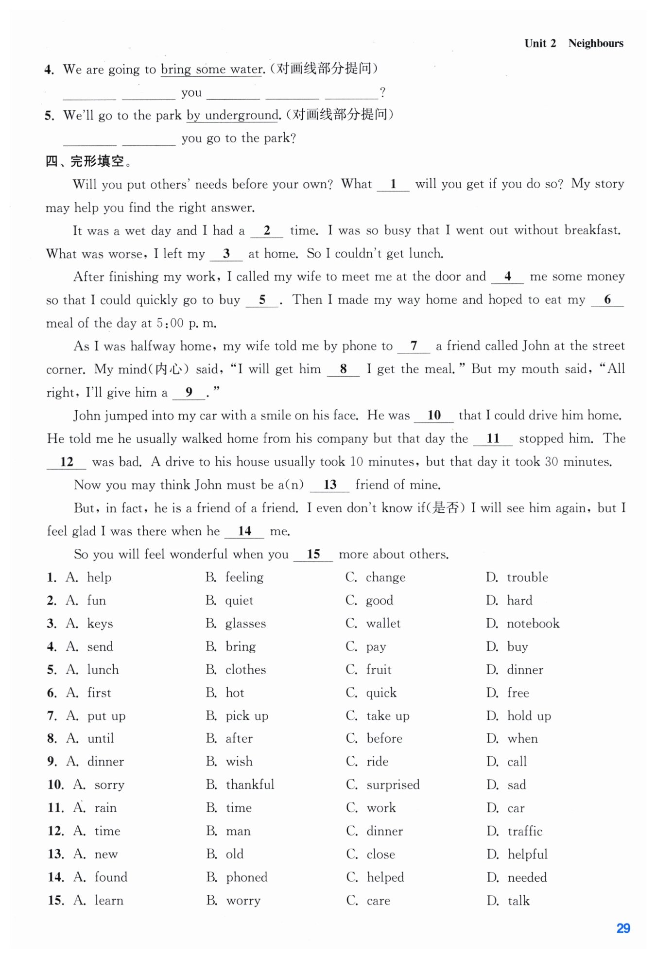 根据“John jumped into my car with a smile on his face."可知作者同意妻子帮忙把这位朋友开车送回家的请求。give sb. a ride 意为“搭便车”,故选C。