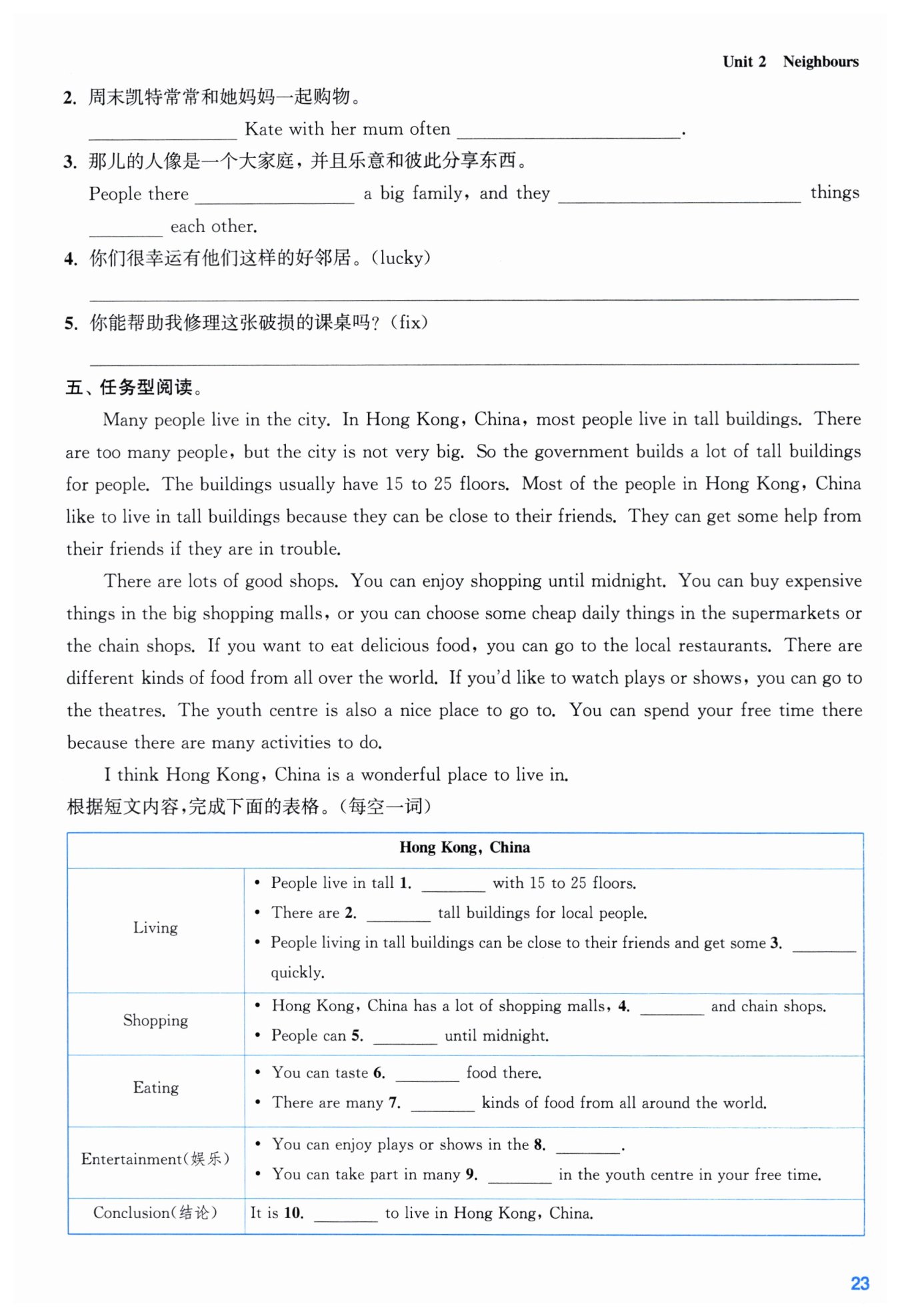 Most of the people in Hong Kong like to live in tall buildings because they can be close to their friends. They can get some help from their friends if they are in trouble. (大多数香港人喜欢住在高楼大厦里,因为这样他们可以离朋友很近。如果他们有困难,他们可以从朋友那里得到帮助。)