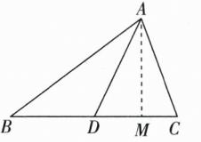 $解:如答图,过点A作AM⊥BC于点M.$ $因为AD是△ABC的中线,$ $所以BD=CD=\frac{1}{2}BC.$ $因为S_{△ABD}=\frac{1}{2}BD·AM,$ $S_{△ACD}=\frac{1}{2} CD·AM,$ $所以S_{△ABD}=S_{△ACD}.$