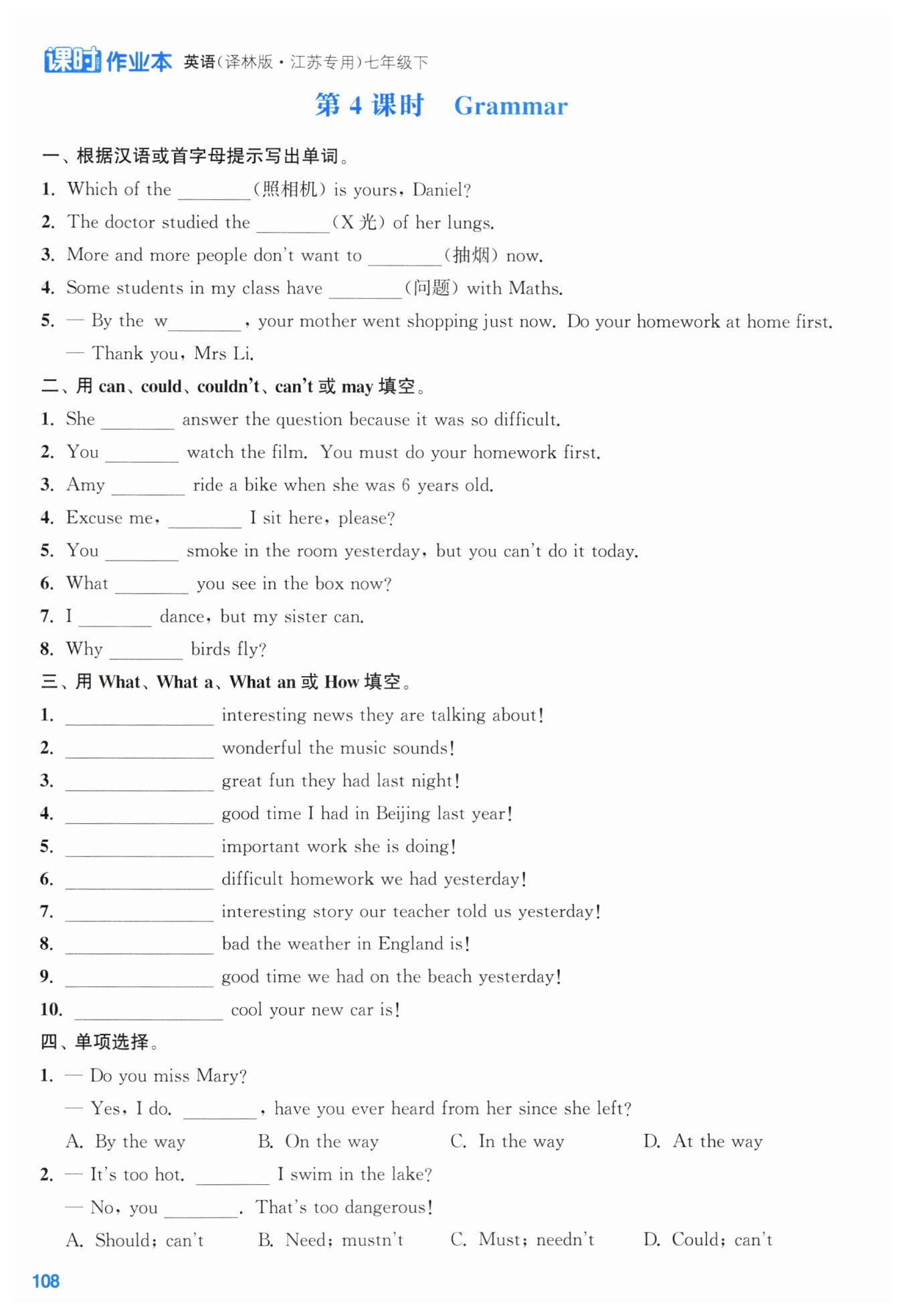 should 应该; need 需要;must 必须;could (礼貌地请求许可)可以,能;