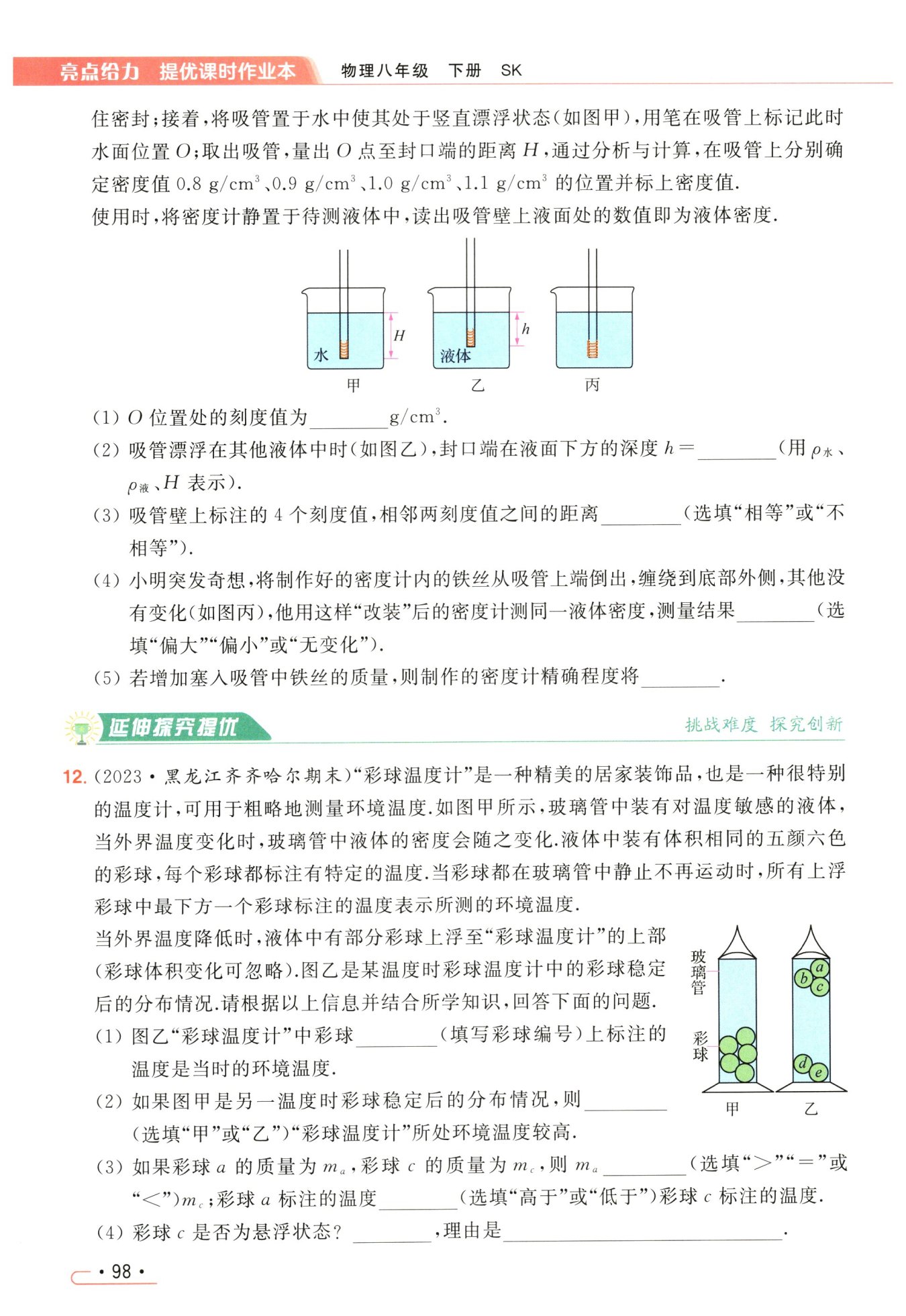 彩球C虽然静止,但除了受到重力和浮力外,还受到其他作用力
