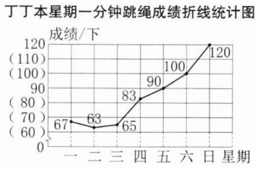 答:丁丁的跳绳成绩总体呈上升趋势。