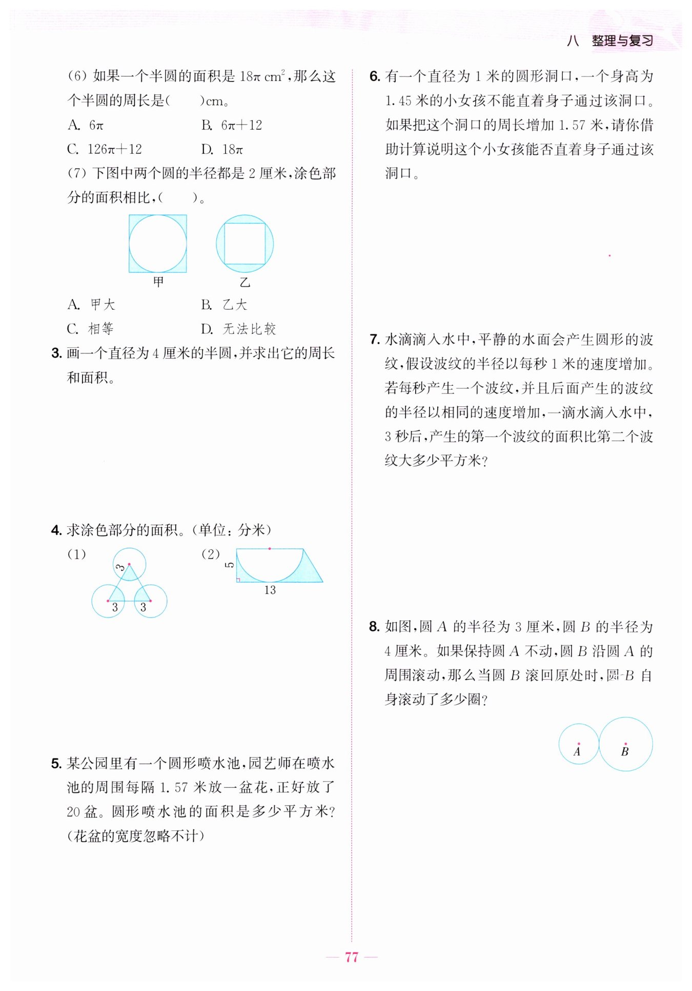 2+13)×5÷2-3.14×5²÷2=18.25(平方分米)
