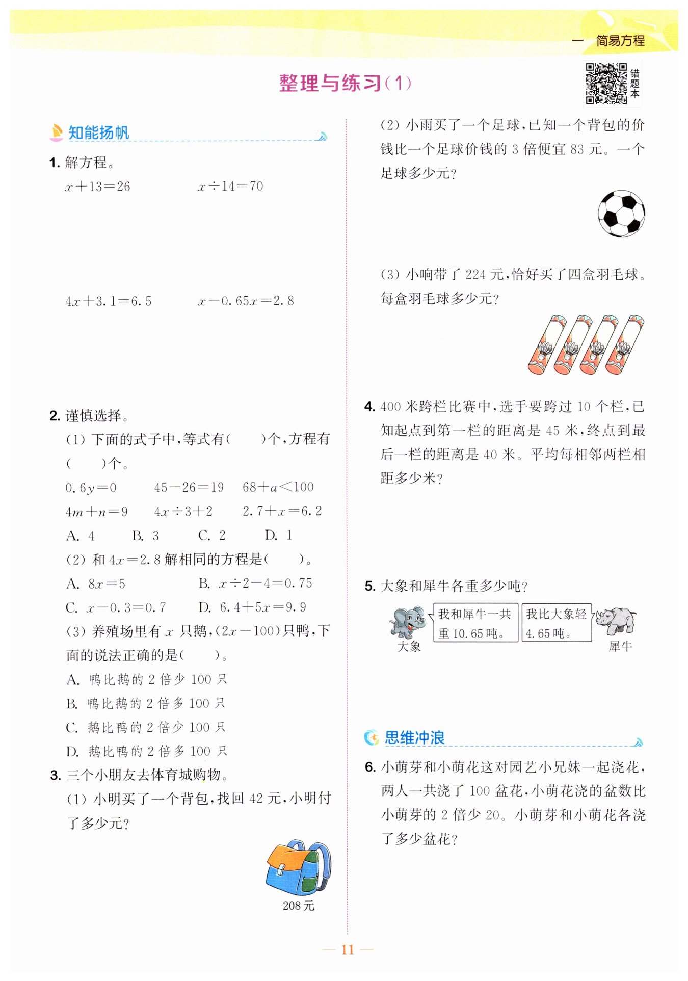解:设大象重x吨,则犀牛重(x-4.65)吨