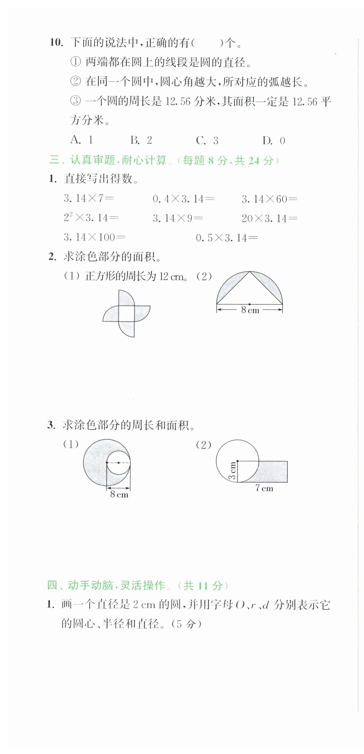 (1)周长:3.14×8+2×3.14×8=75.36(cm)