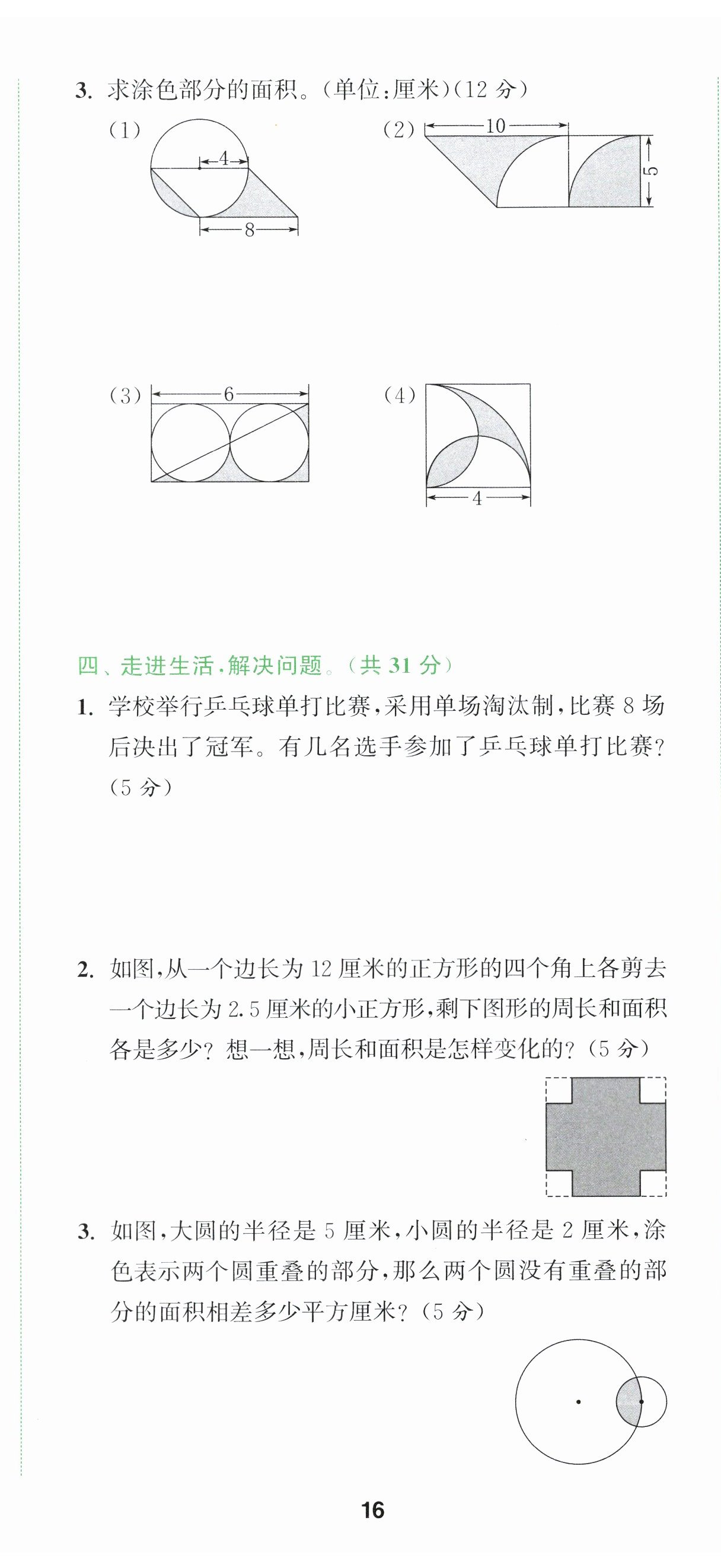 面积:12×12-2.5×2.5×4=119(平方厘米)