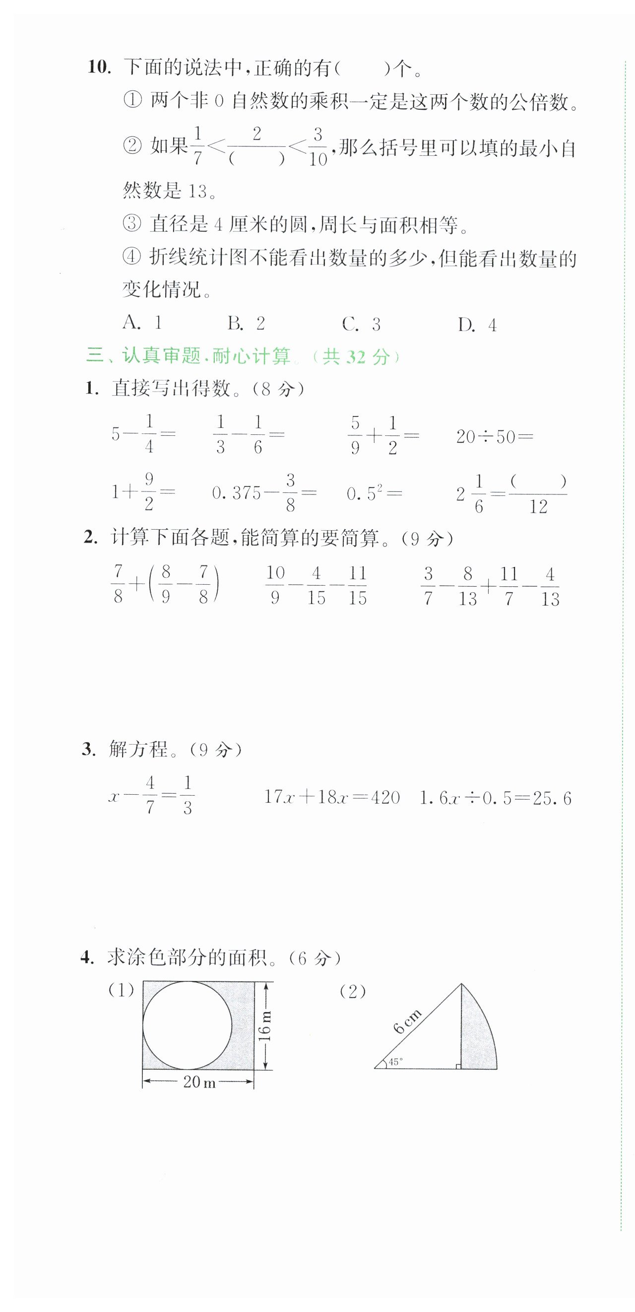 (2)3.14×6²÷8-6×(6÷2)÷2=5.13(cm²)