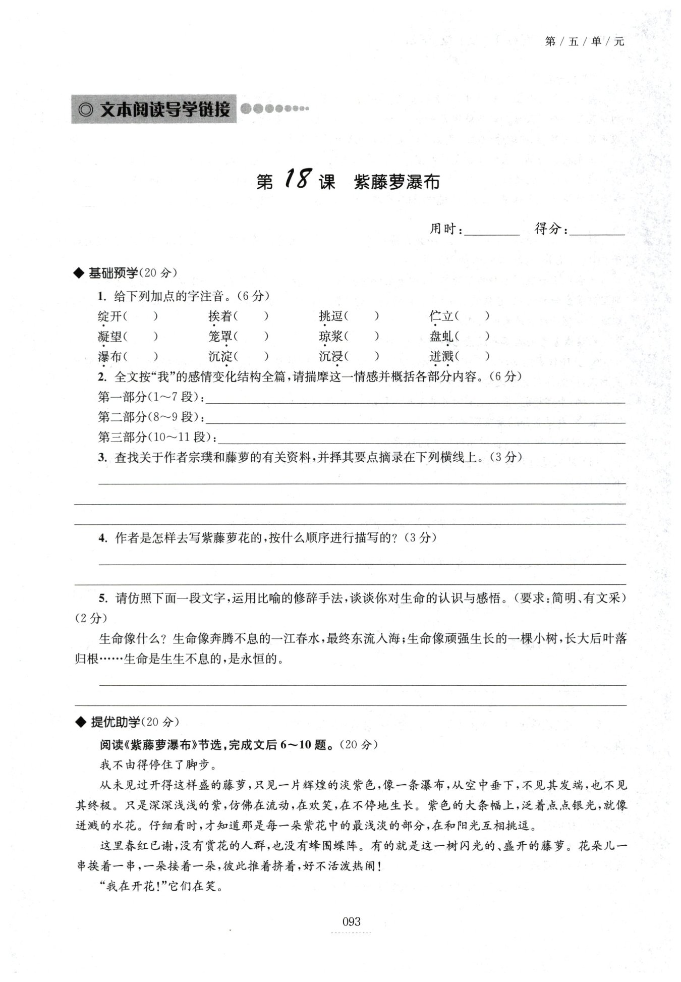 抓住了紫藤萝花的色、形、味来写,由花瀑——花穂——花朵,按照整体——局部的顺
