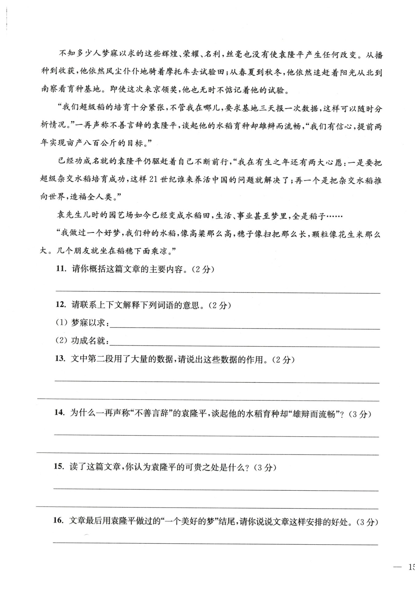 这篇文章叙写了被人们视为“神农”的袁隆平研究杂交水稻的事迹。