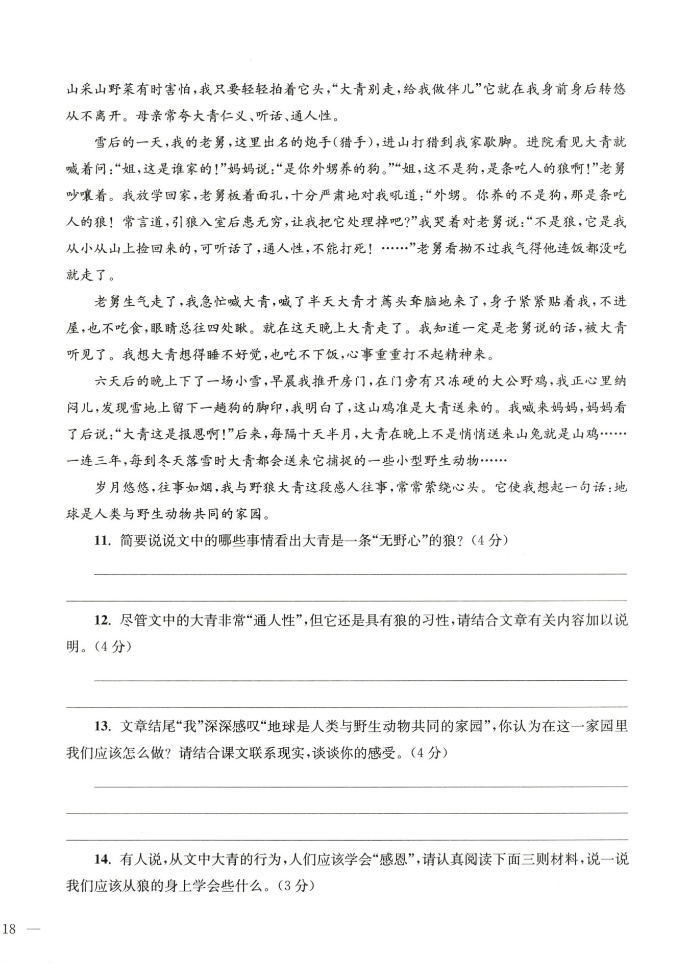 吵嚷后与“我”依依而别;大青走后不忘知恩图报。