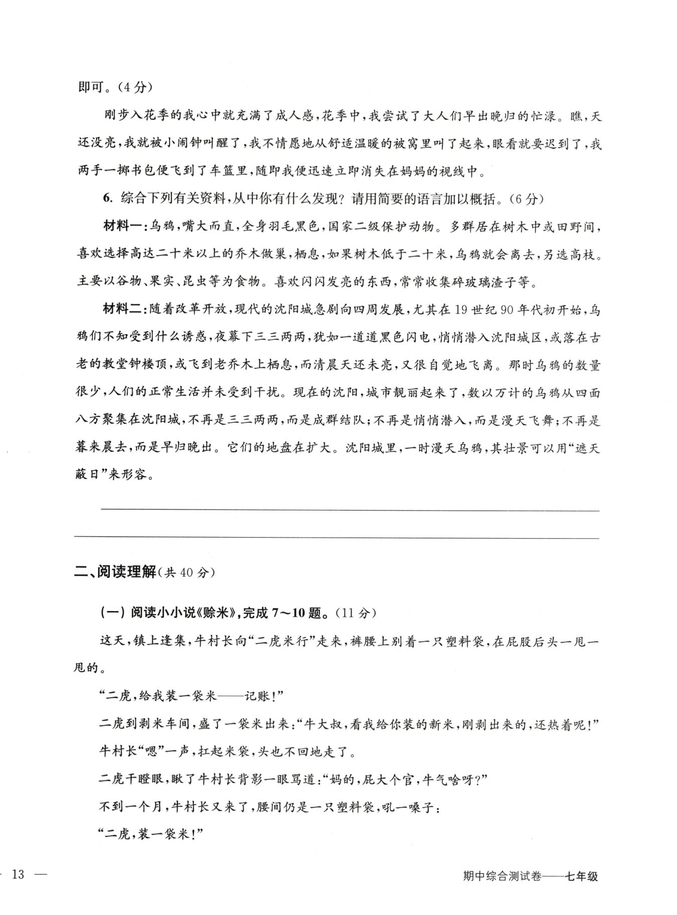③“尝试”可改为“体验”;④“漉”改为“碌”;⑤“我不情愿地”后可添加“被妈妈”;