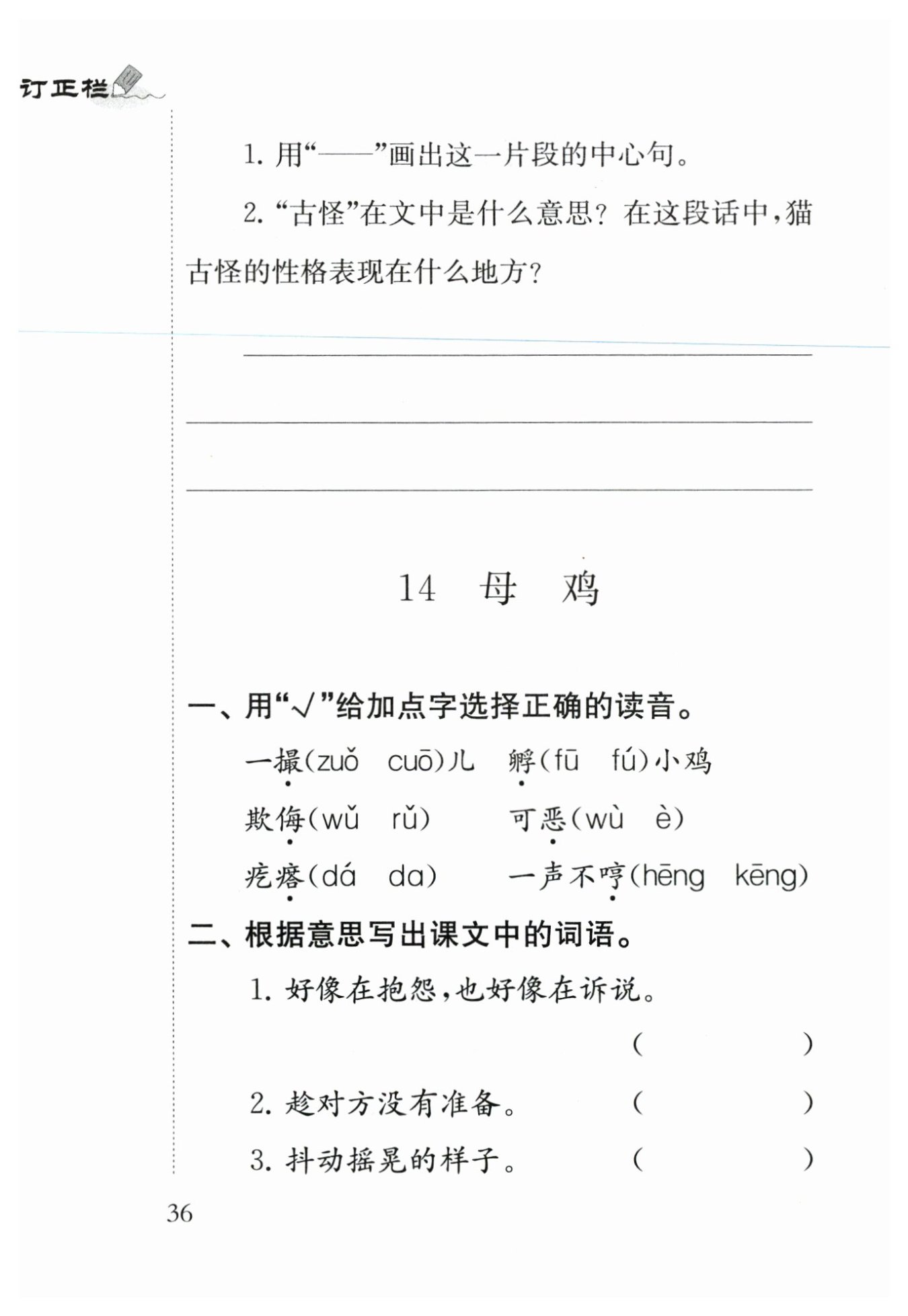 ②然后结合文中有关猫性格特点的相关语句进行筛选概括。由“说它老实吧,它的确有时候很乖”“说它贪玩吧,的确是啊,要不怎么会一天一夜不回家呢?”“可是,它听到老鼠的一点儿响动,又是多么尽职”可知,猫既老实又贪玩,既贪玩又尽职,这些矛盾点集中在猫的身上,在作者看来便是猫古怪的性格。