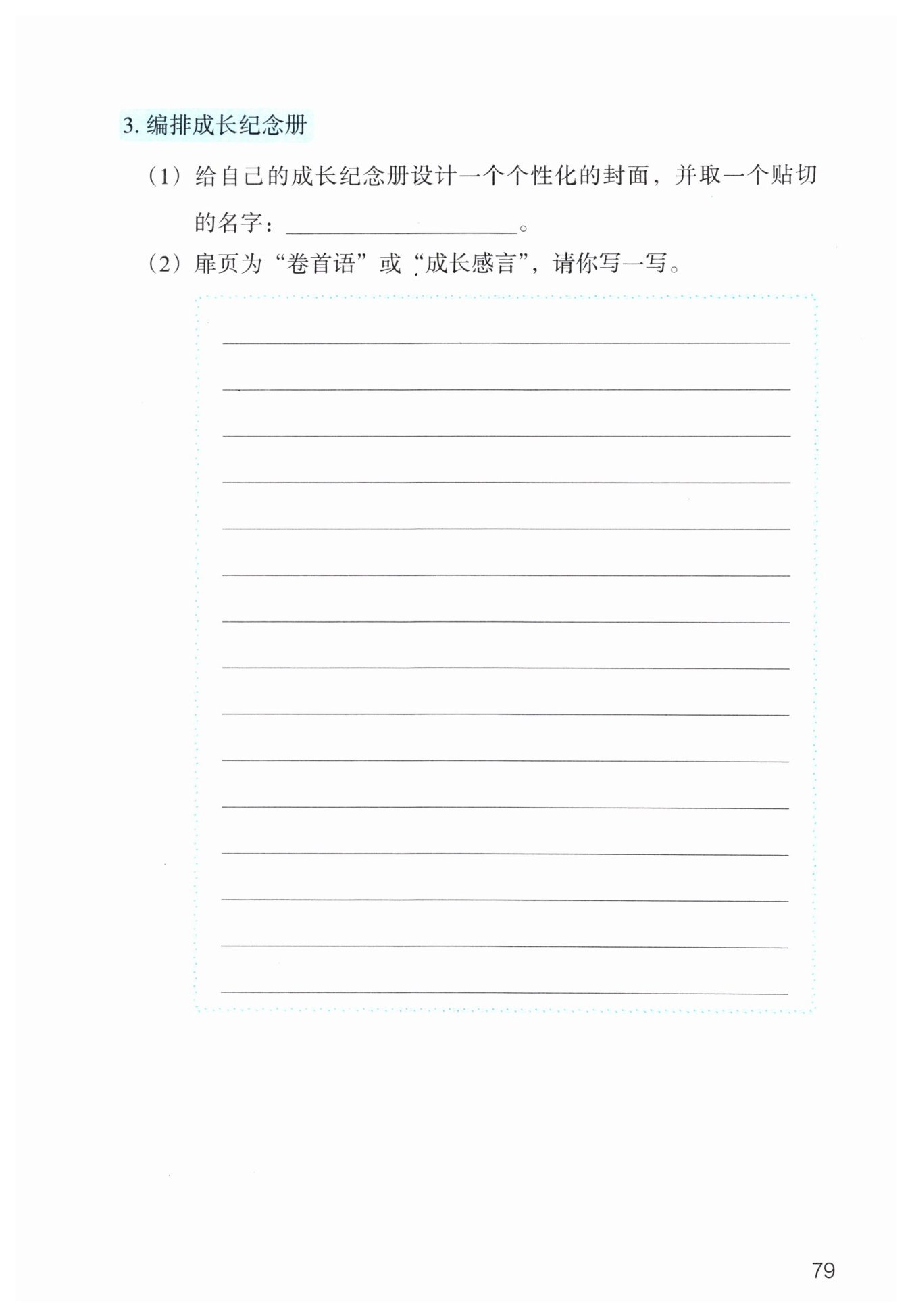 题干要求给成长纪念册取名字,抓住重点词语“成长”即可,例如: