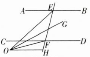 $解:∵AB//CD,OH//AB.$ $∴AB//OH//CD,\ $ $∴∠AEO=∠EOH,∠CFO=∠FOH,\ $ $∴∠AEO+∠CFO=∠EOH+∠FOH, 即∠AEO+∠CFO=∠EOF.\ $ $∵∠AEO=45°,∠CFO=75°,$ $∴∠EOF=120°.\ $ $∵OG平分∠EOF,$ $∴∠EOG=60°,\ $ $∴∠HOG=∠EOG-∠EOH=∠EOG-∠AEO=15°.$