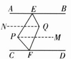 $解:2∠EQF+∠EPF=360°.理由如下:\ $ $如图,过点P作PM//AB,过点Q作QN//AB.\ $ $因为AB//CD,$ $所以AB//CD//PM//QN,\ $ $所以∠BEP+∠MPE=180°,$ $∠DFP+∠MPF=180°,$ $∠BEQ=∠NQE,∠DFQ=∠FQN,\ $ $所以∠BEP+∠DFP+∠MPE+∠MPF=360°,$ $∠BEQ+∠DFQ=∠NQE+∠FQN=∠EQF,$ $即∠BEP+∠DFP+∠EPF=360°.\ $ $因为EQ、FQ分别平分∠PEB和∠PFD,\ $ $所以∠BEQ+∠DFQ=\frac{1}{2}(∠BEP+∠DFP)=∠EQF,$ $即∠BEP+∠DFP=2∠EQF,$ $所以2∠EQF+∠EPF=360°.$