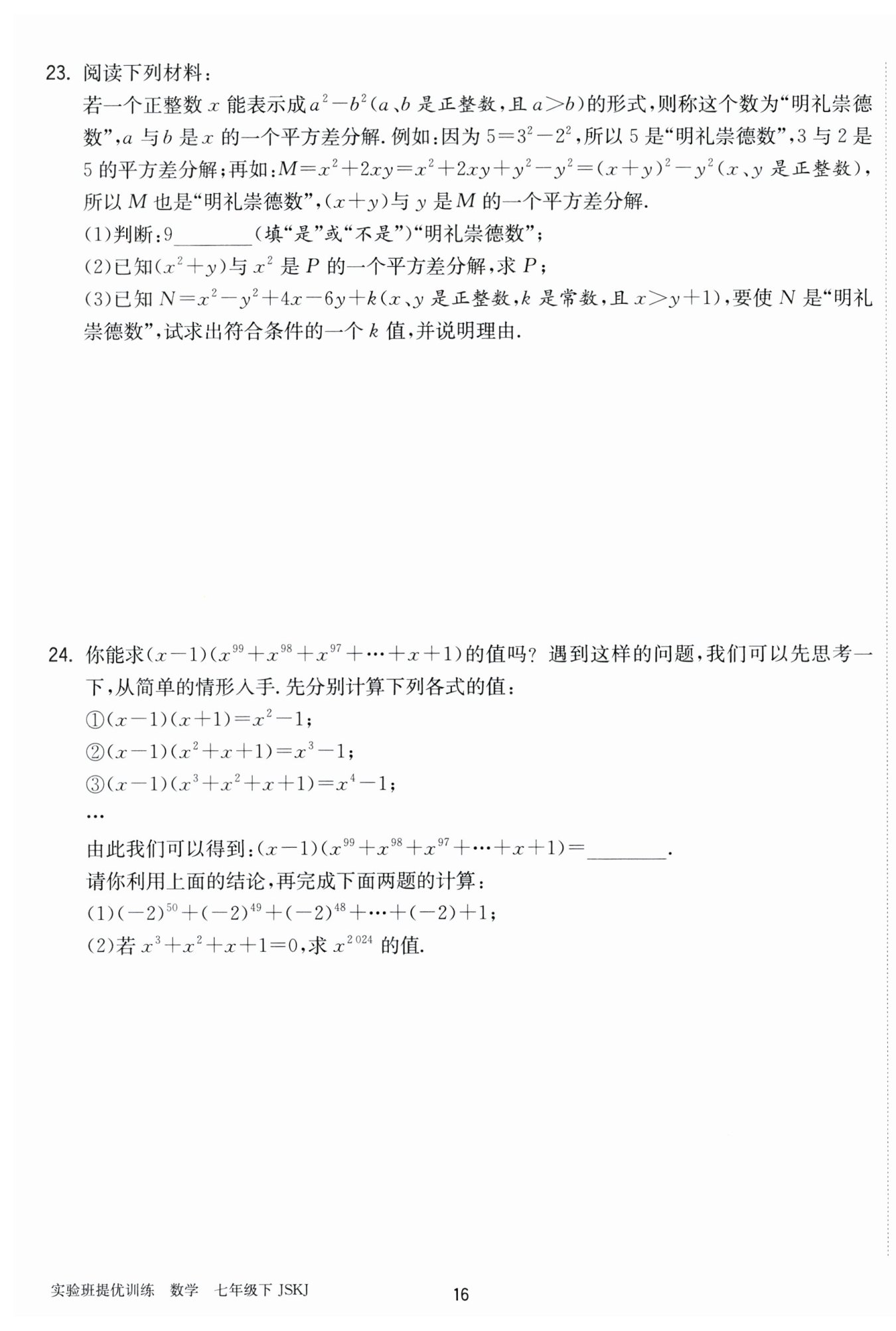 $解:(2)∵(x²+y)与x²是P的一个平方差分解,\ $