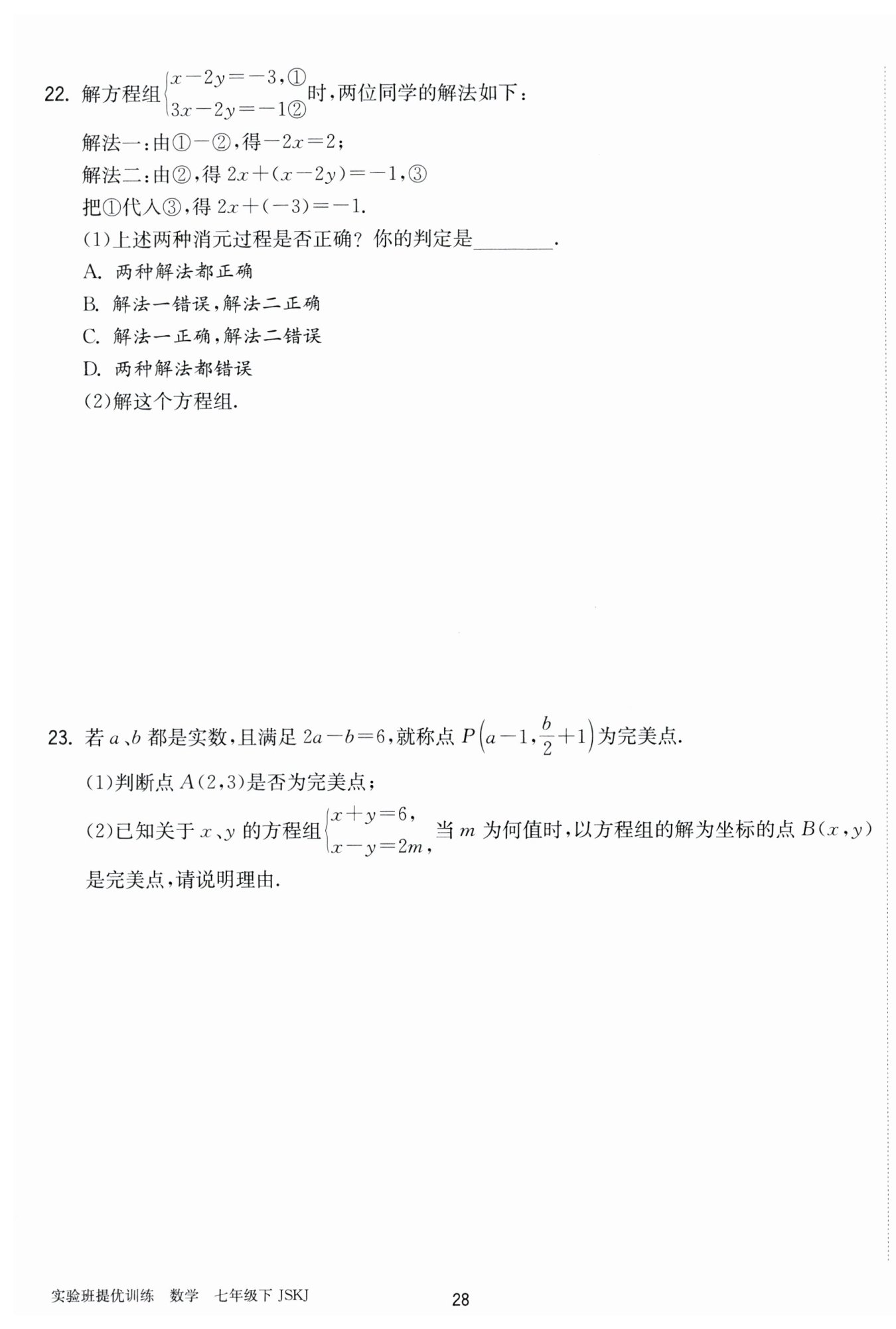 $解:(1)点A(2,3)不是完美点.理由如下:$