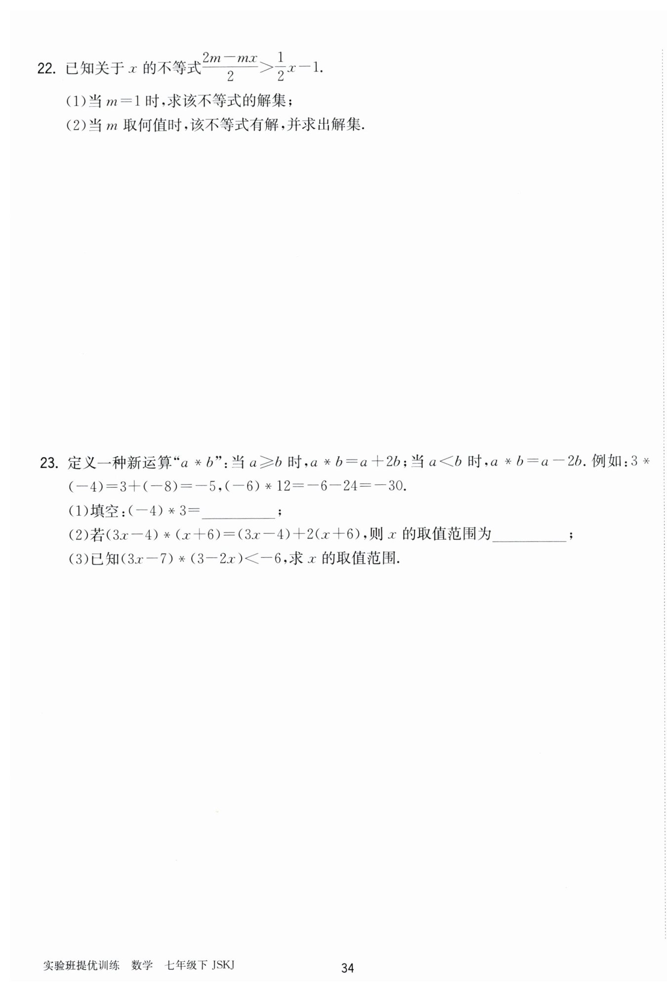 $ 则(3x-7)-2(3-2x)\lt -6,解得x\lt 1.$