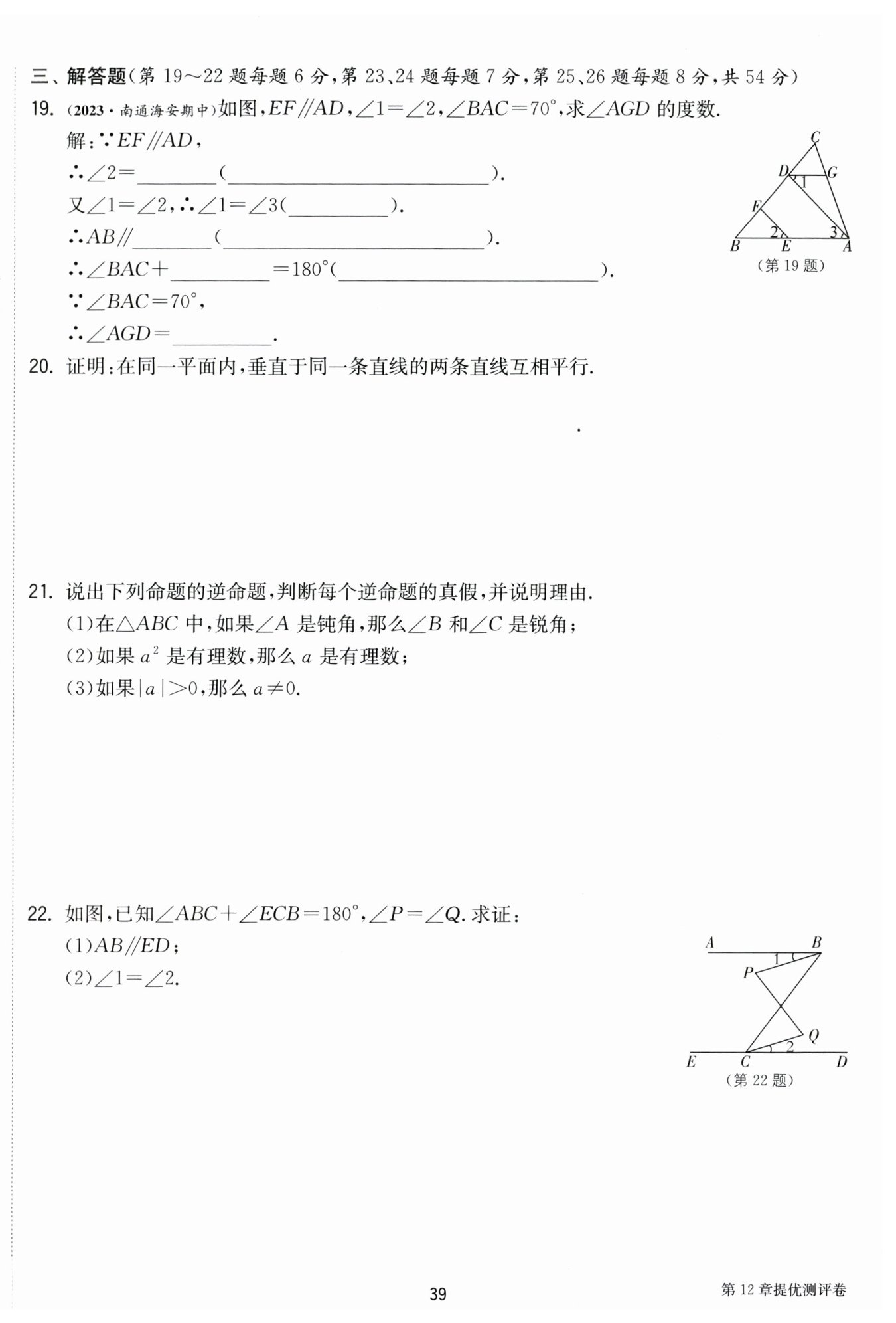 $解:(1)逆命题:在△ABC中,如果∠B和∠C是锐角, 那么∠A是钝角,是假命题.\ $