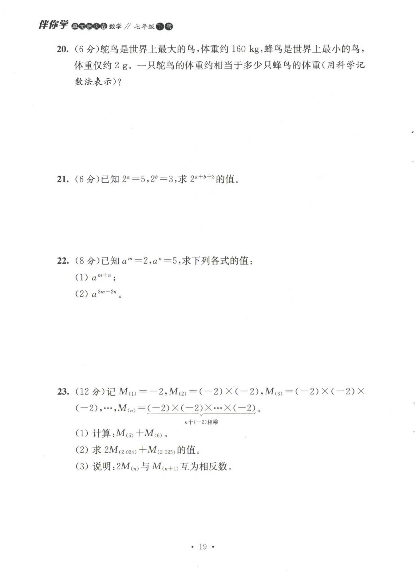 $(2) 2M_{(2024)}+M_{(2025)}=2 ×(-2)^{2024} +(-2)^{2025}=-(-2) ×(-2)^{2024}+(-2)^{2025}$