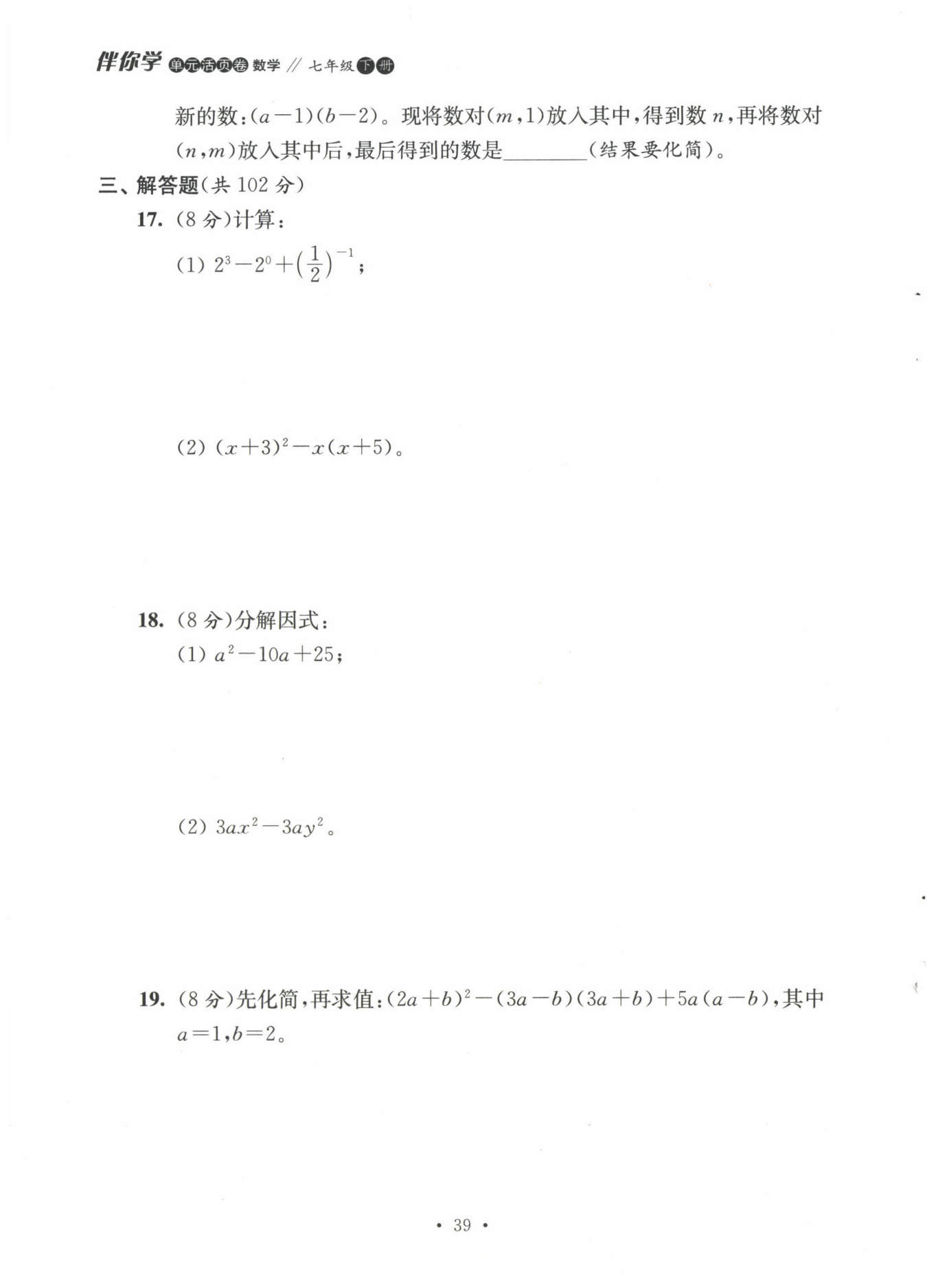 解:$(2a+b)^2-(3a-b)(3a+b)+5a(a-b)$