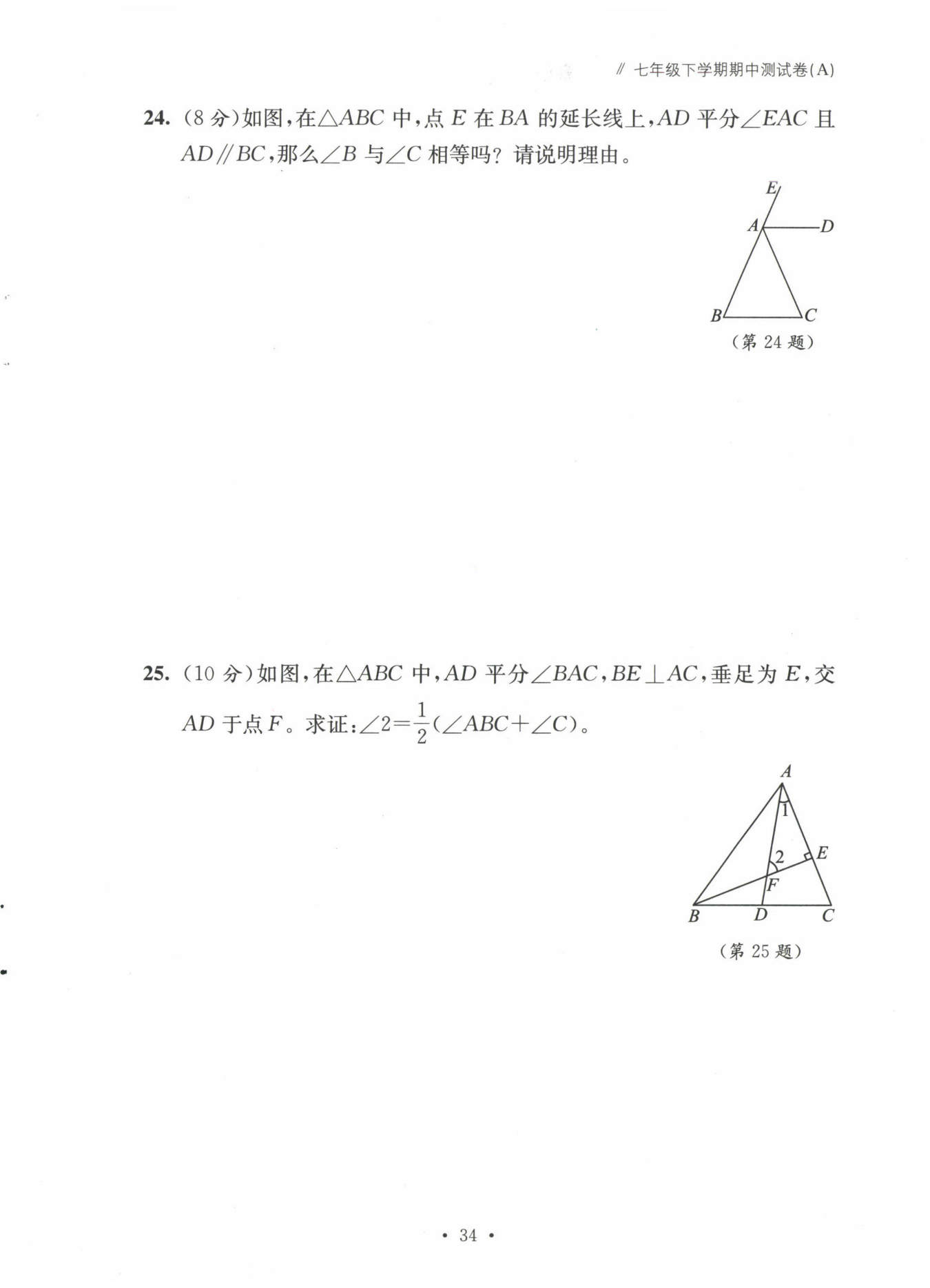 所以$ \angle E A D=\angle B ($两直线平行, 同位角相等),
