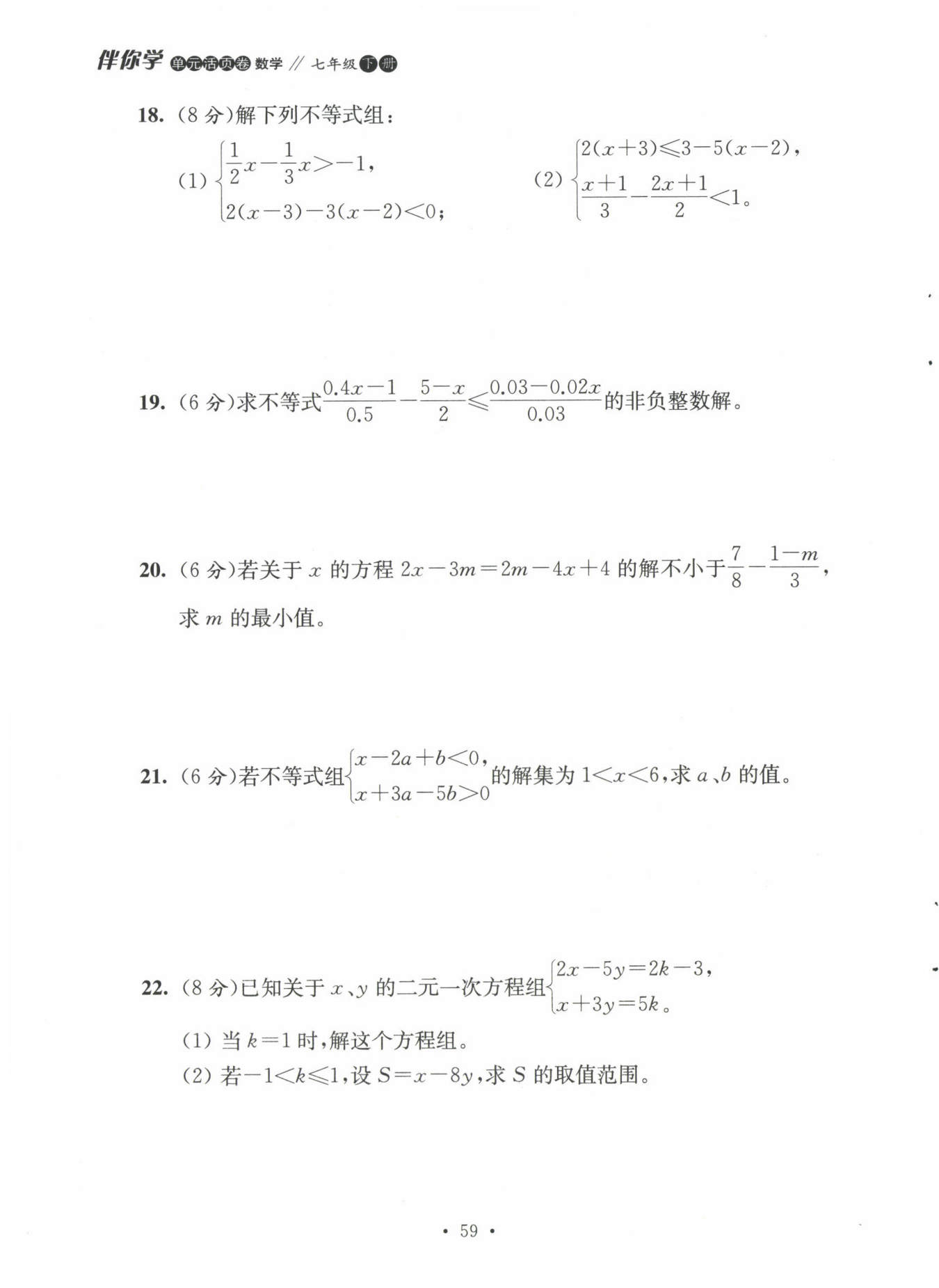 ∵$2 x-3\ \mathrm {m}=2\ \mathrm {m}-4 x+4 的解不小于 \frac {7}{8}-\frac {1-m}{3}$