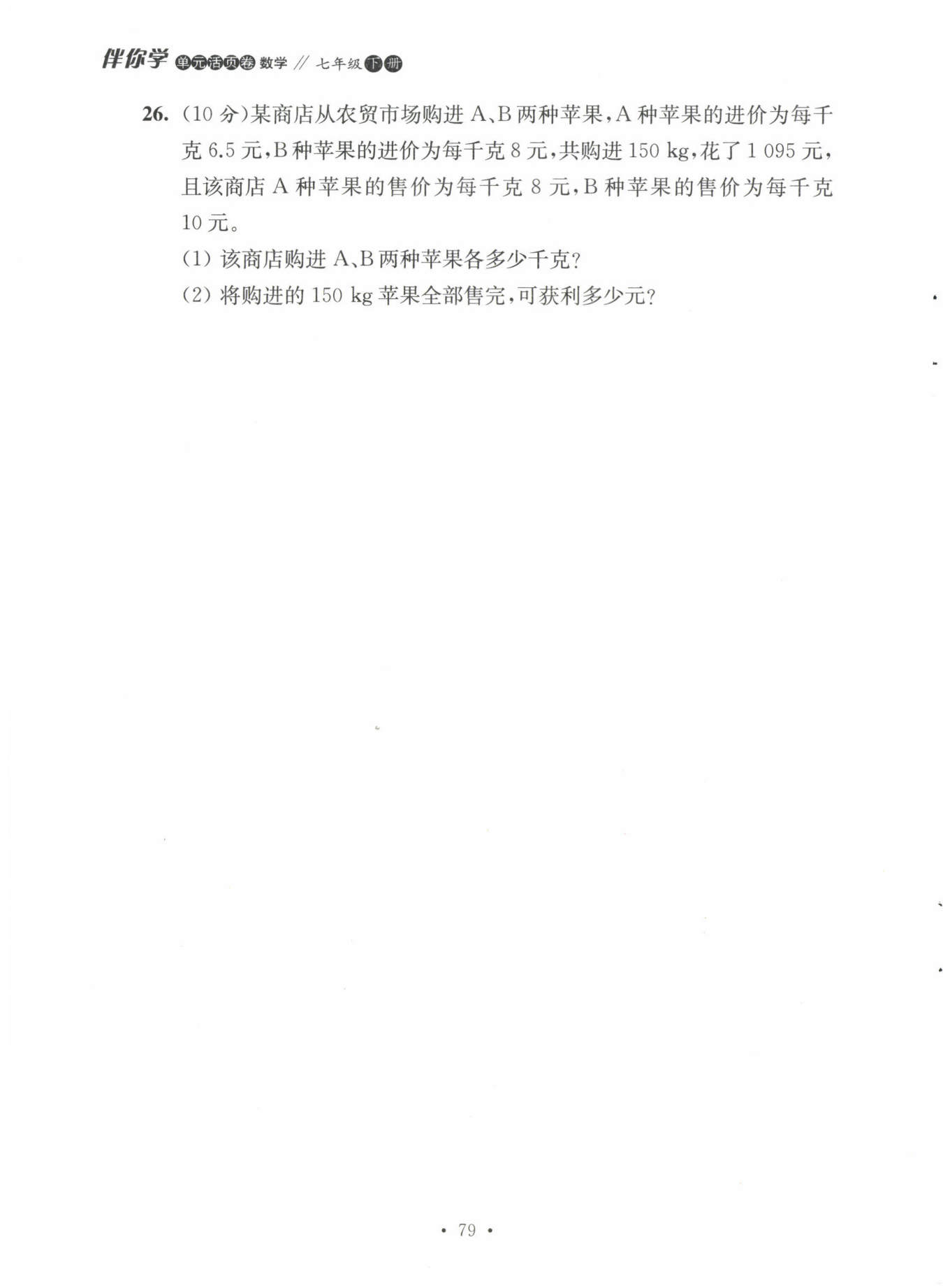 答:该店购进$ A $种苹果$ 70 $千克$, B $种苹果$ 80 $千克;