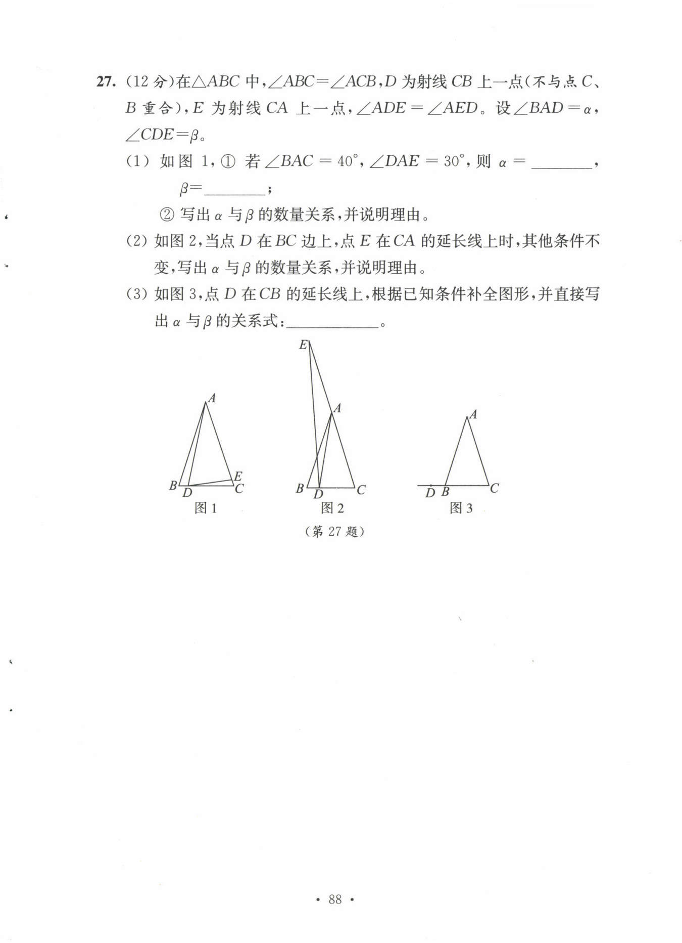 设$ \angle B A C=x°, \angle D A E=y° , $则$α=x°-y° $