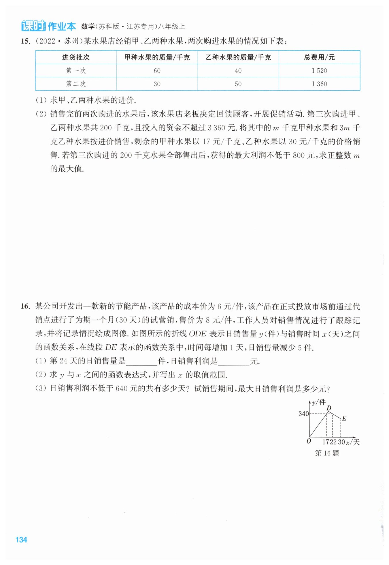 (3) 当0≤x≤18时,根据题意,得(8- 6)×20x≥640,解得x≥16;