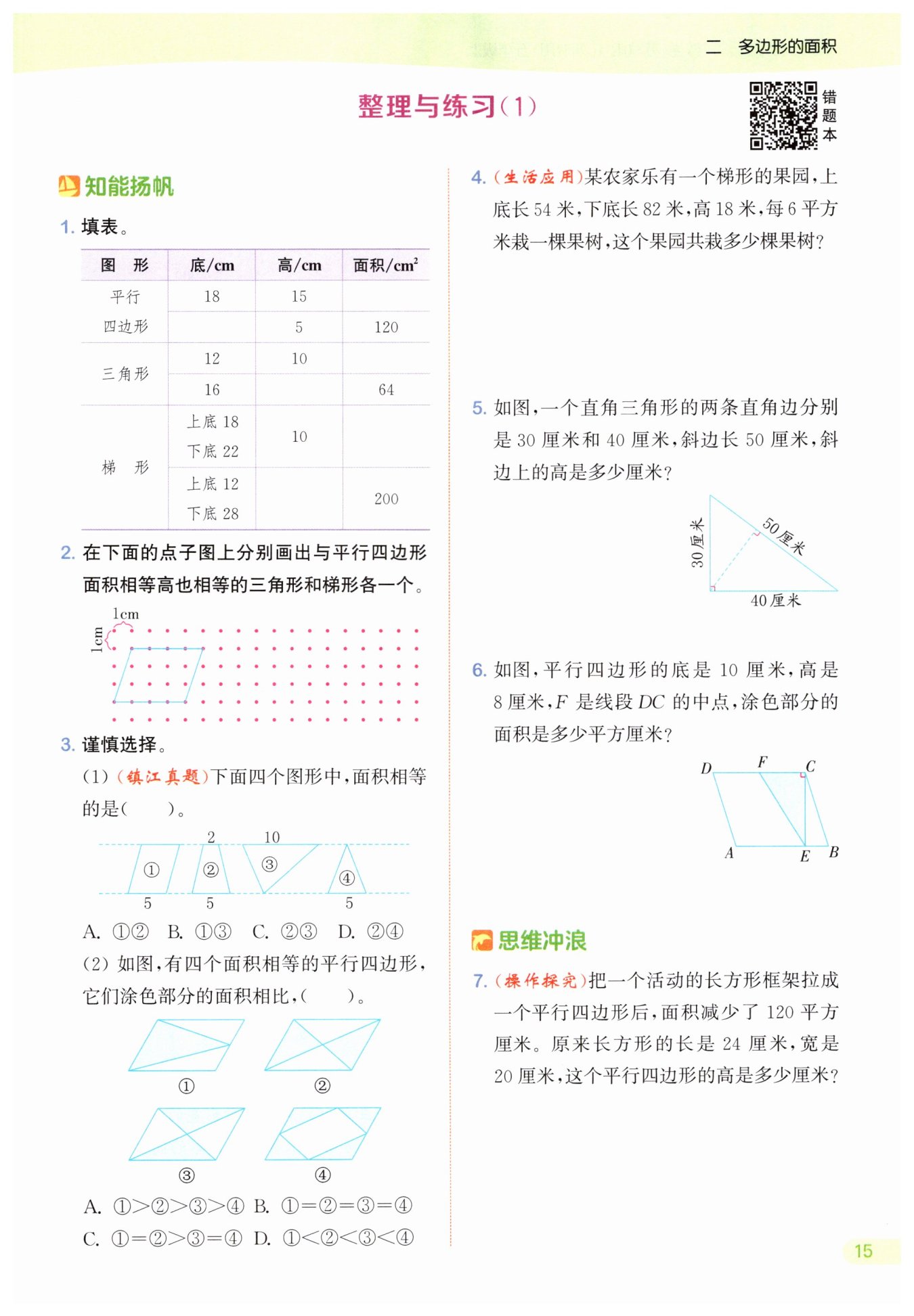 答:涂色部分的面积是20平方厘米。