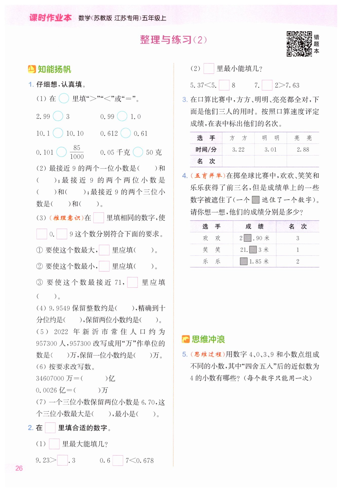 答:“四舍五入”后的近似数为4的小数有3.940、