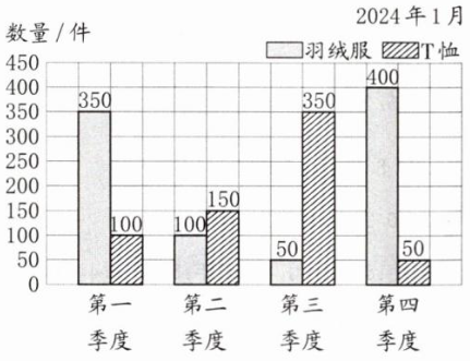 预测第四季度羽绒服销售400件,T恤销售50件。