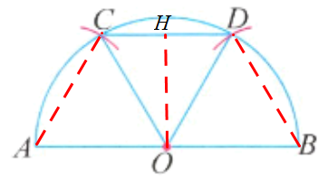 $则∠OHC=90°,CH=\frac{1}{2}\ \mathrm {CD}$
