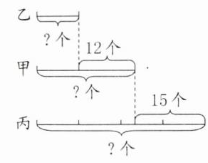 $12+15=27(个)\ $ $乙筐:27÷3=9(个)$ $甲筐:9+12=21(个)\ $ $丙筐:9×4=36(个)$