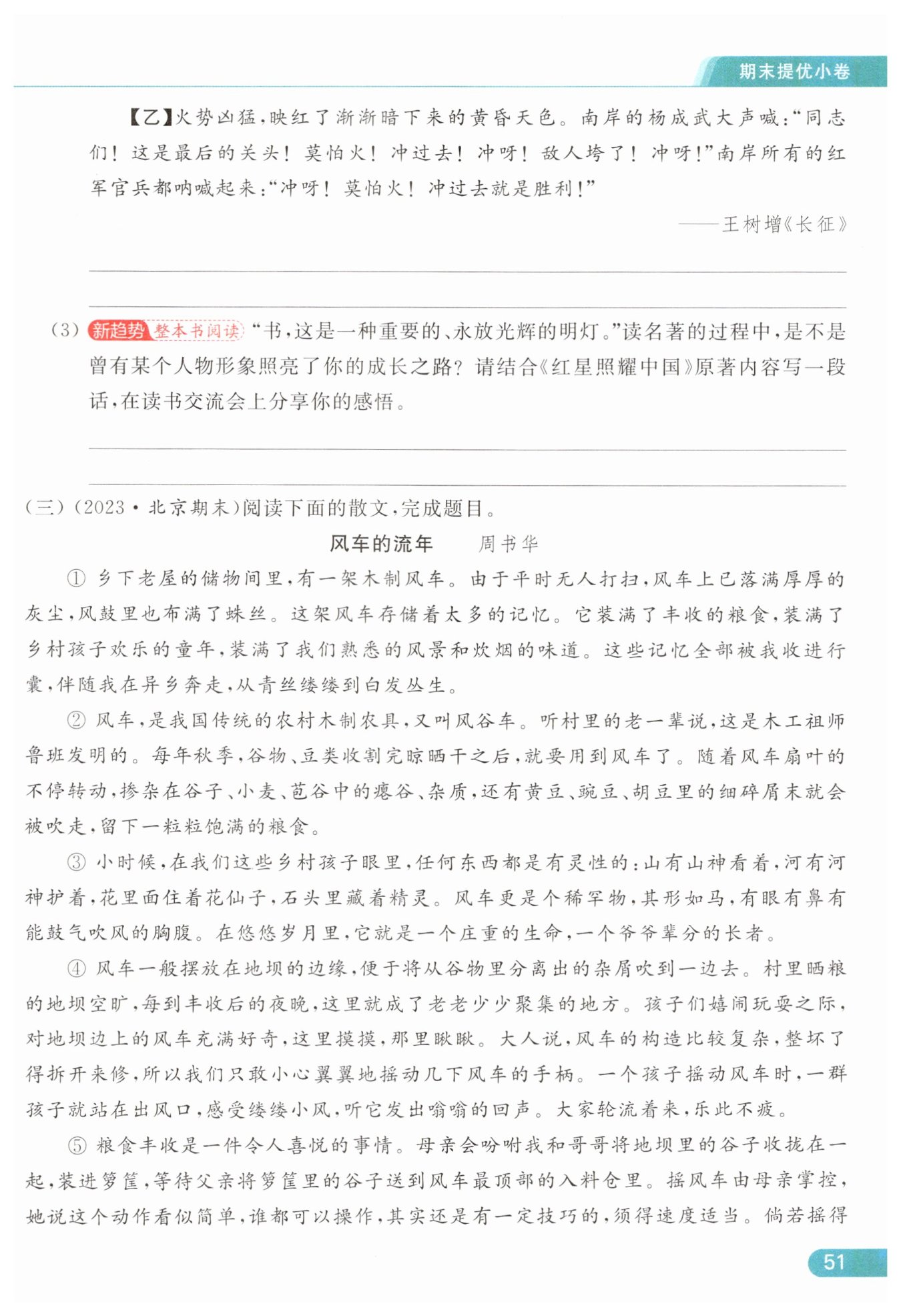 素材来源角度:甲片段中斯诺的素材主要来自对红军战士和其他相关人员的采访,因此所写内容比较客观、真实;乙片段是王树增搜集了大量资料,采访了许多红军老战士,还进行了实地调查,综合整理材料写成的,在遵循真实性原则的前提下,在创作时又加入了自己的想象,使得作品更具文学性。