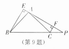 $证明:(1)∵BE⊥AP,CF⊥AP,\ $ $∴∠E=∠CFA=90°,$ $∴∠FAC+∠ACF=90°.\ $ $∵∠BAC=90°,$ $∴∠BAE+∠FAC=90°,\ $ $∴∠BAE=∠ACF.\ $ $在△ABE和△CAF中,$ $\begin{cases}{∠E=∠CFA,\ }\\{∠BAE=∠ACF,\ }\\{AB=CA,\ }\end{cases}$ $∴△ABE≌△CAF(\mathrm {AAS}),\ $ $∴AE=CF,BE=AF.\ $ $∵EF=AE-AF,$ $∴EF=CF-BE.$ (更多请点击查看作业精灵详解)