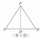 $证明:如图,过点P作PD⊥AB于点D,$ $ 则∠PDA=∠PDB=90°.$ $ 在Rt△PDA和Rt△PDB中,$ $\begin{cases}{PA=PB }\\{PD=PD}\end{cases}$ $ ∴Rt△PDA≌Rt△PDB(\mathrm {HL}),$ $∴AD=BD.$ $ ∵PD⊥AB,$ $∴PD垂直平分AB,$ $即P在线段AB的垂直平分线上$