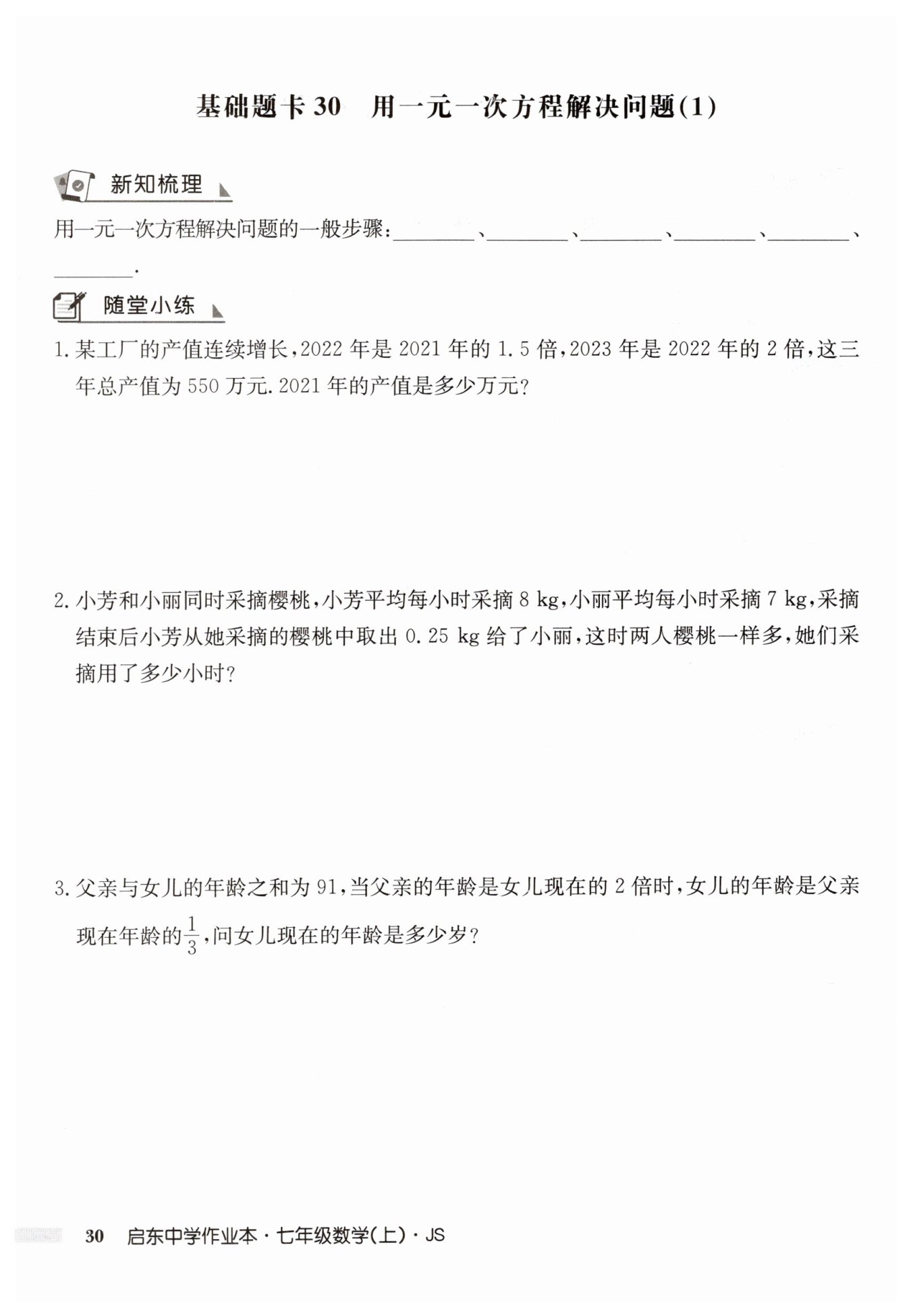 根据题意,得$ (91-x)-2x=x-\frac {1}{3}(91-x)$
