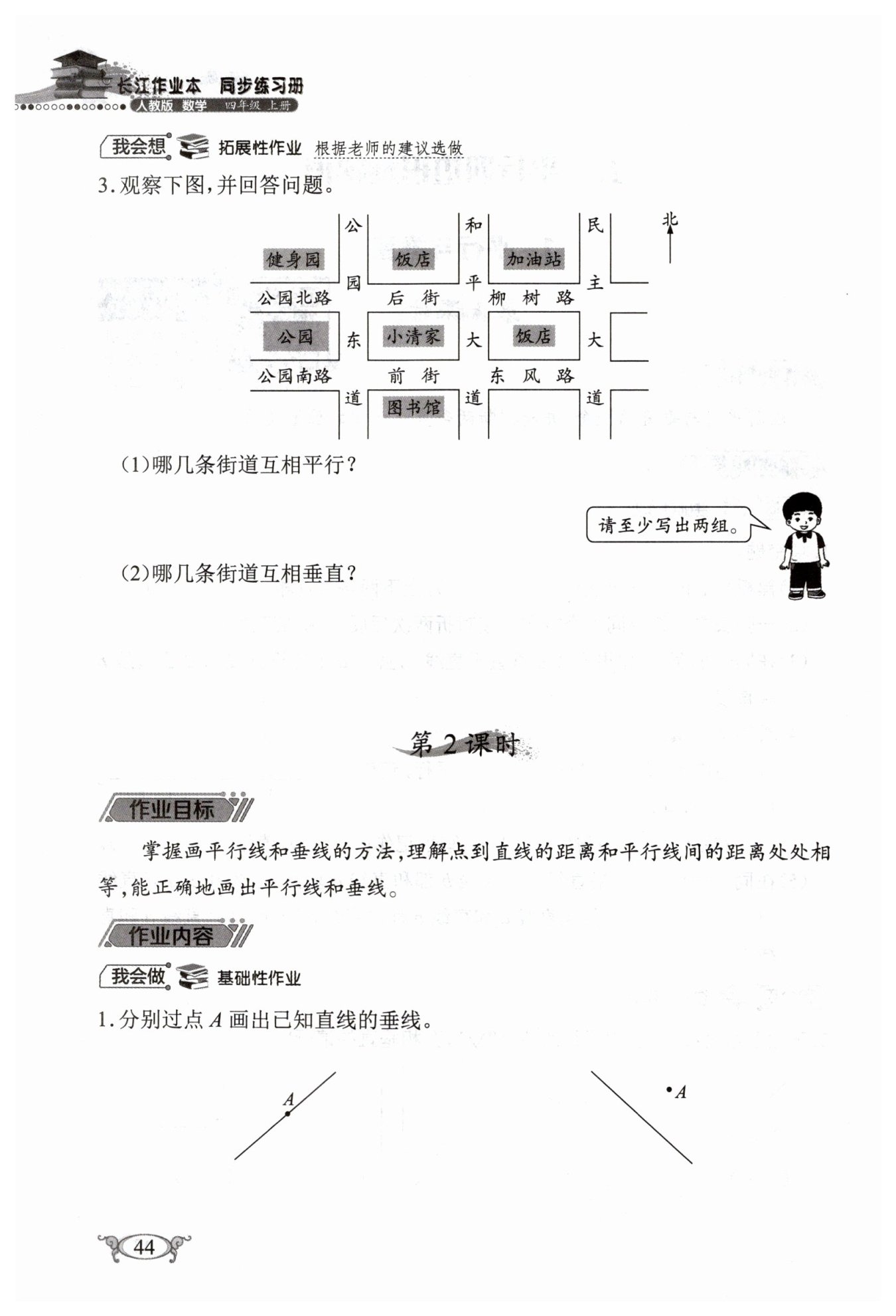 答:公园东道垂直于后街和前街;和平大道垂直于柳树路和东风路;