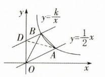 $解:把直线y=\frac{1}{2}x向上平移3个单位长度$ $得到的图象对应的函数解析式为y=\frac{1}{2}x+3$ $如图,设平移后的图象与y轴交于点D,连接AD$ $在y=\frac{1}{2}x+3中$ $当x=0时,y=3,∴点D的坐标为(0,3)$ $∵△AOB和△ADO同底等高$ $∴S_{△AOB}=S_{△ADO}=6 $