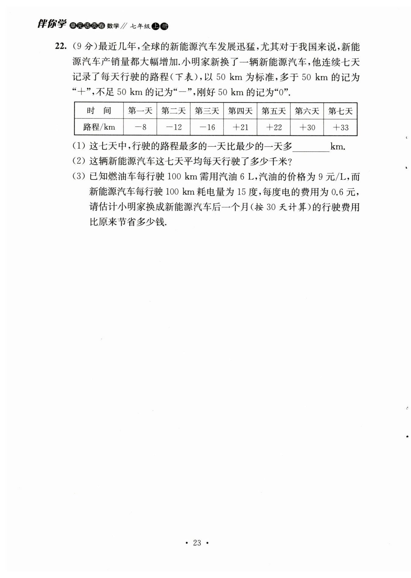 $ 解:(2)-8-12-16+21+22+30+33=70(km)$