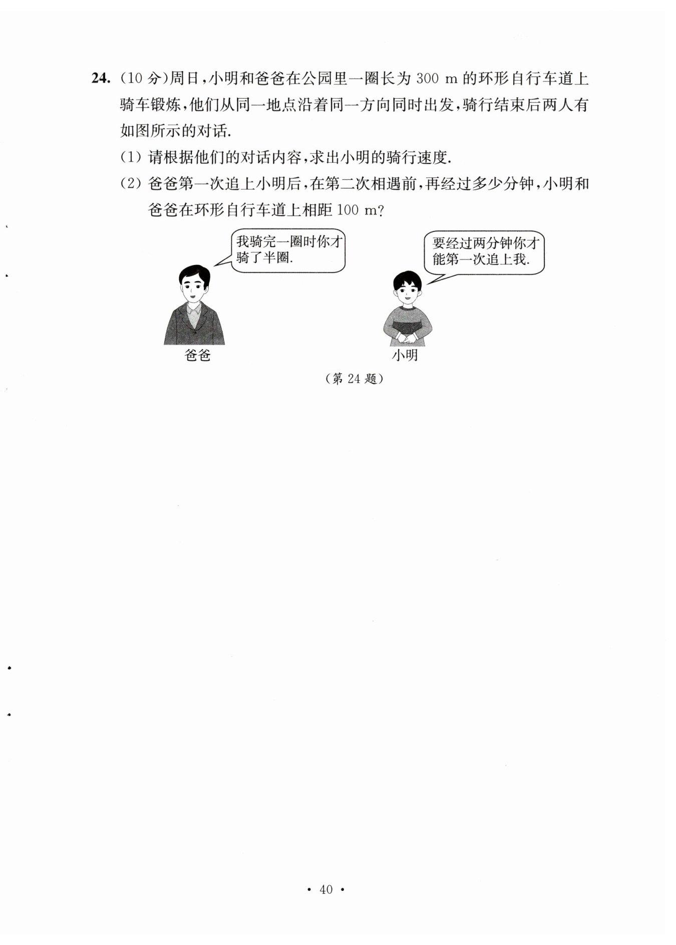 $解:(1)设小明的骑行速度为x米/分钟,则爸爸的骑行速度为2x米/分钟$