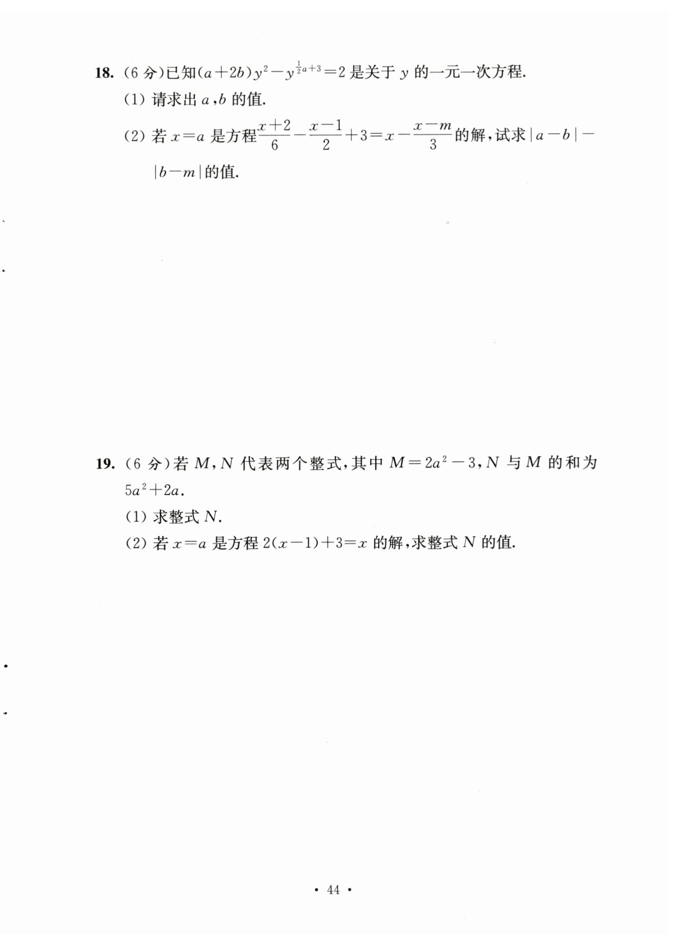 $(x+2)-3(x-1)+18=6x-2(x-m)$