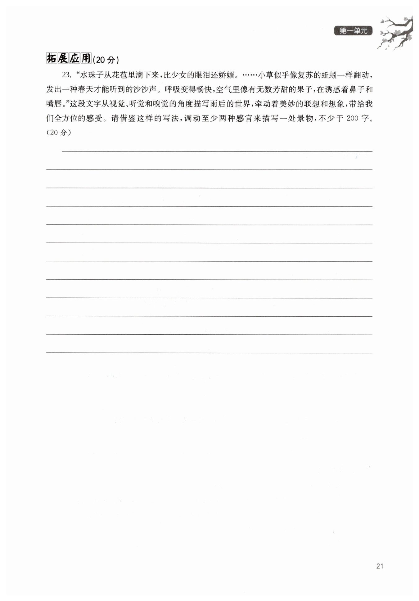 示例:校园的早晨是恬静的。雾气弥漫在大地,像一层薄纱,把校园围了起来。太