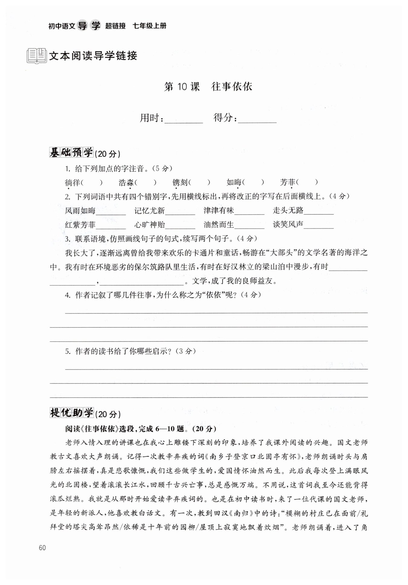 生来说都是极为难得的财富。“依依”突出这四件往事印象深刻,说明在自己记忆中很难忘。