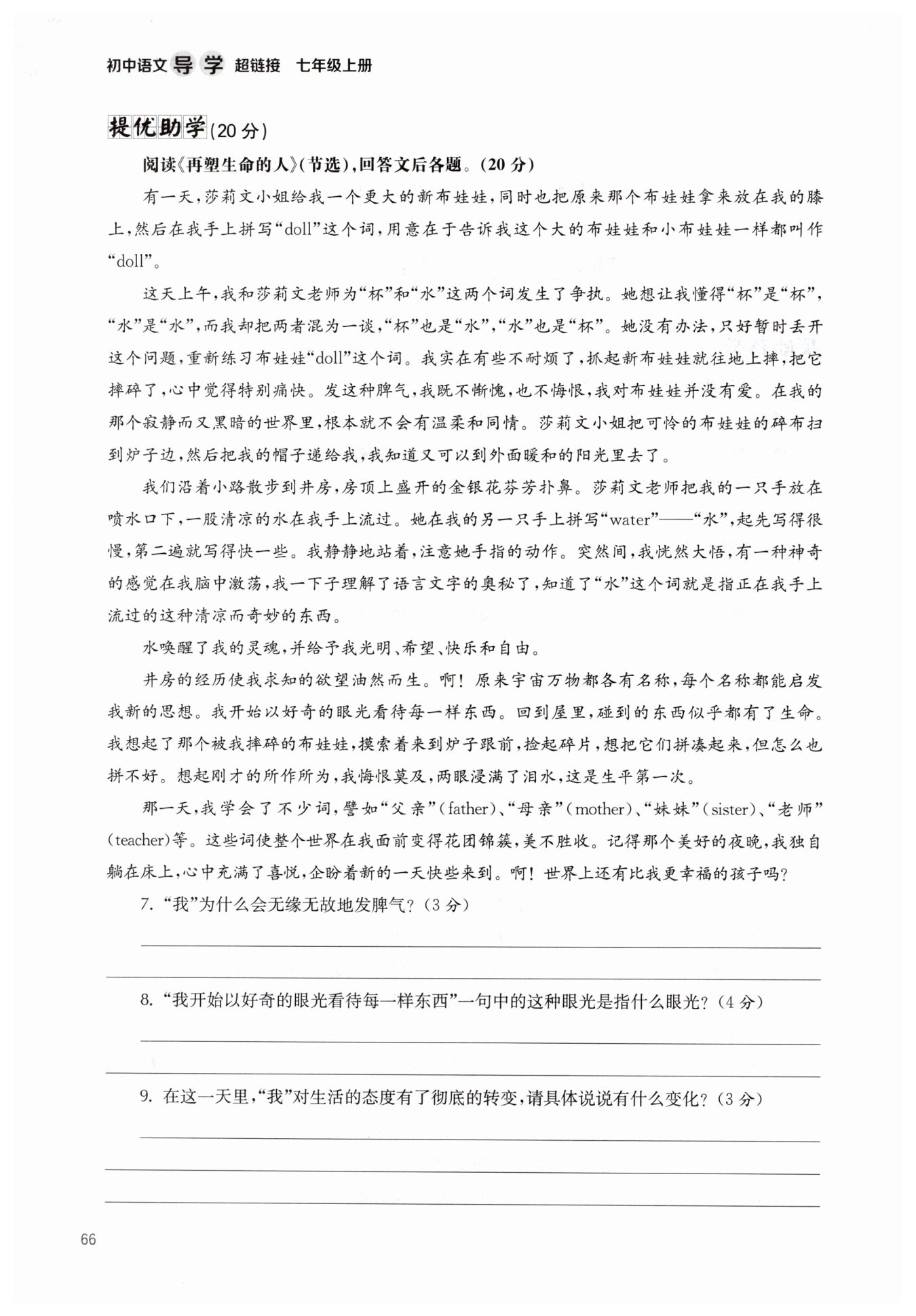这种眼光是指“我”懂得了每样东西都有名称,而且似乎都能启发我的新思想。