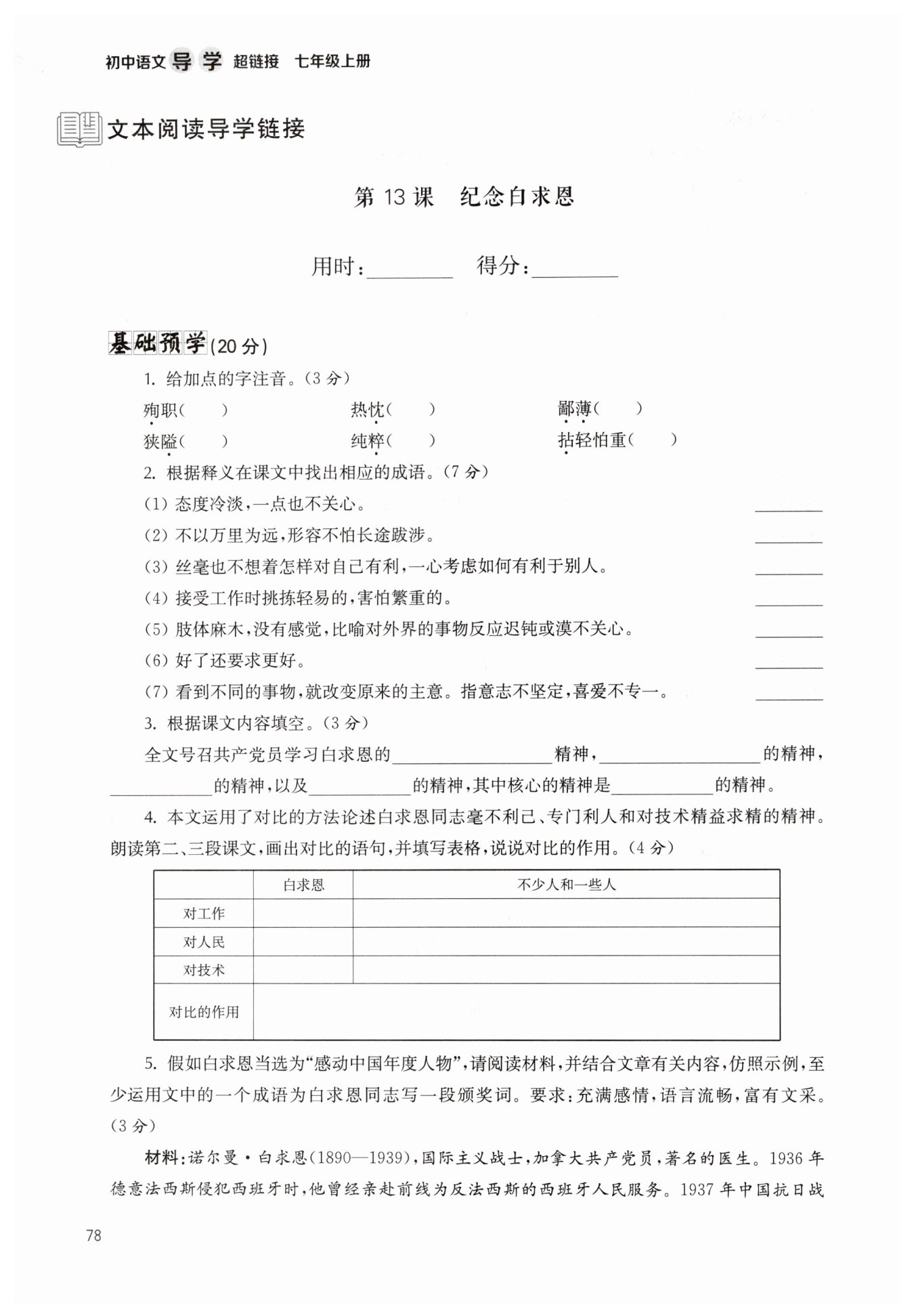 可贵;其次,通过对比显示出了我们有些同志与白求恩相比还有